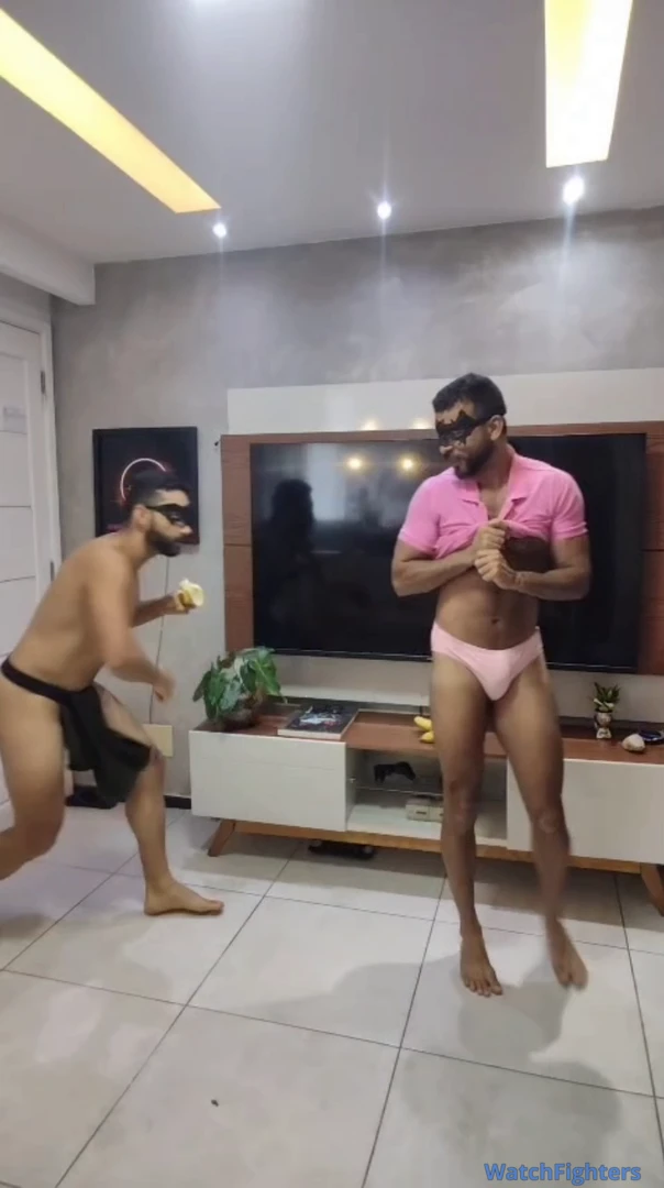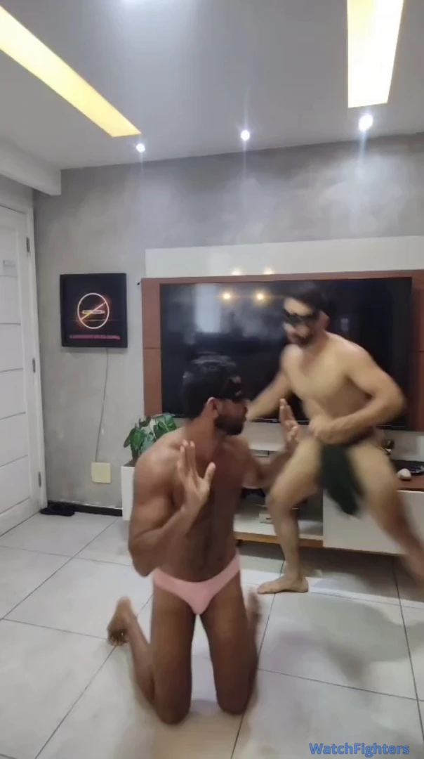 Tarzan aplicando chaves de pernas no gay afeminado