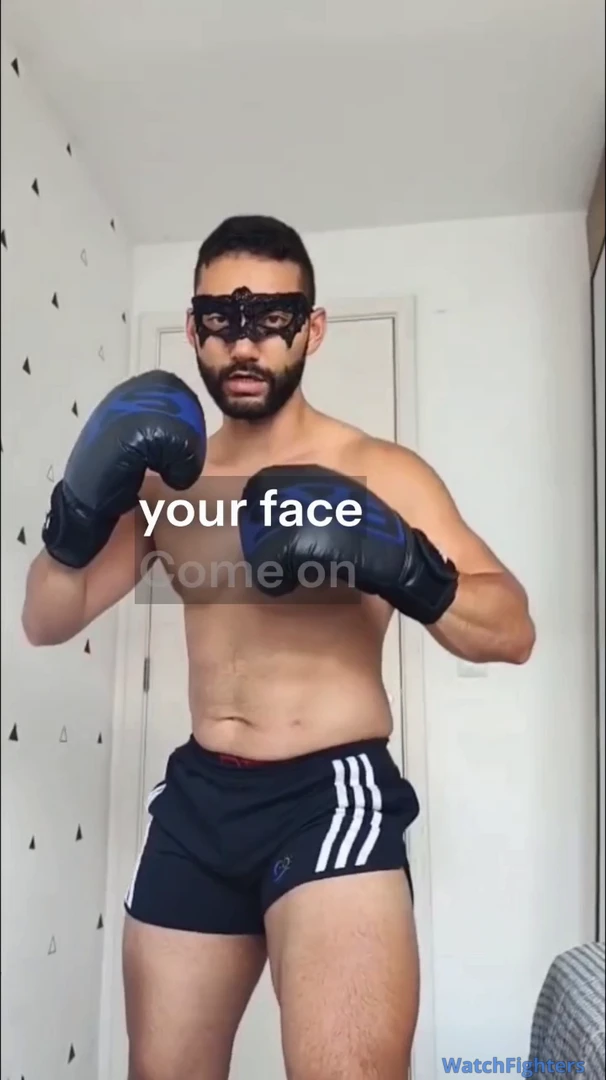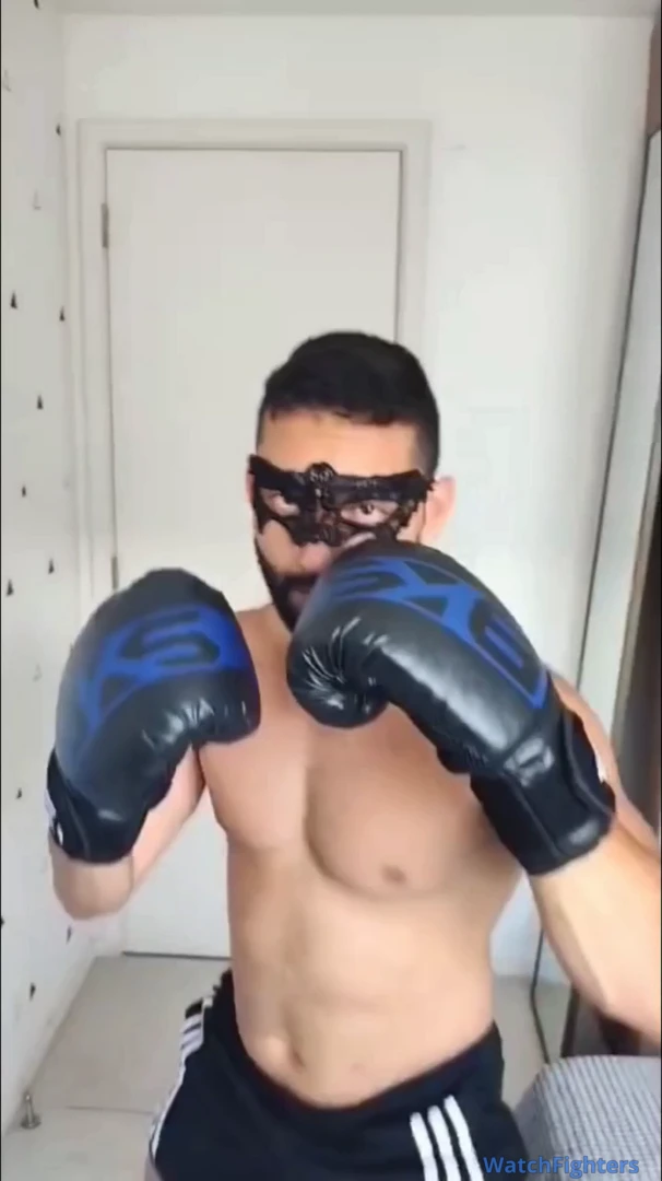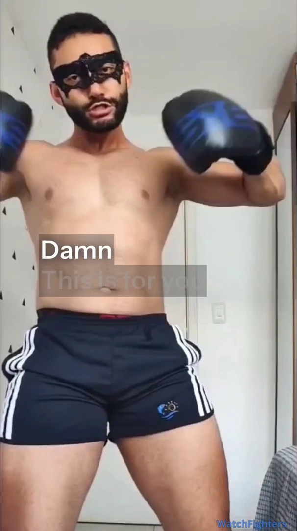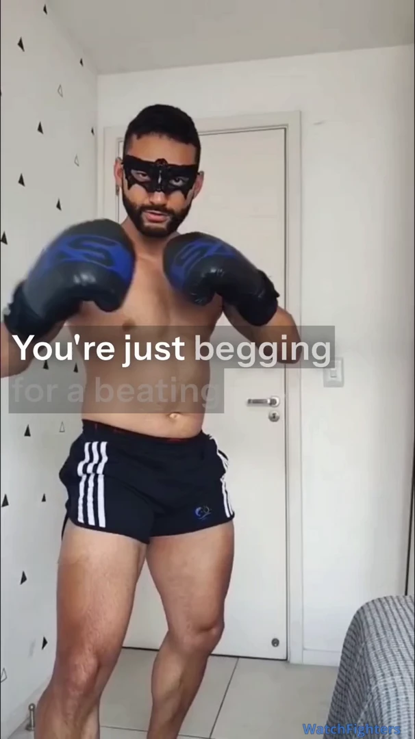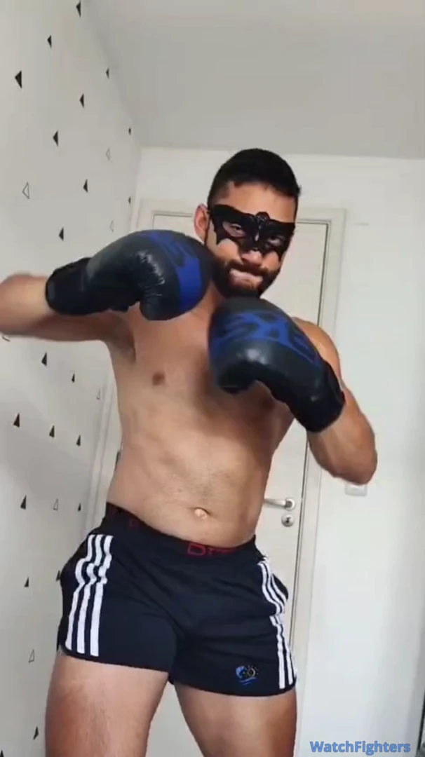 Boxeador forte mostrando seu corpo musculoso e xingando muito seu oponente