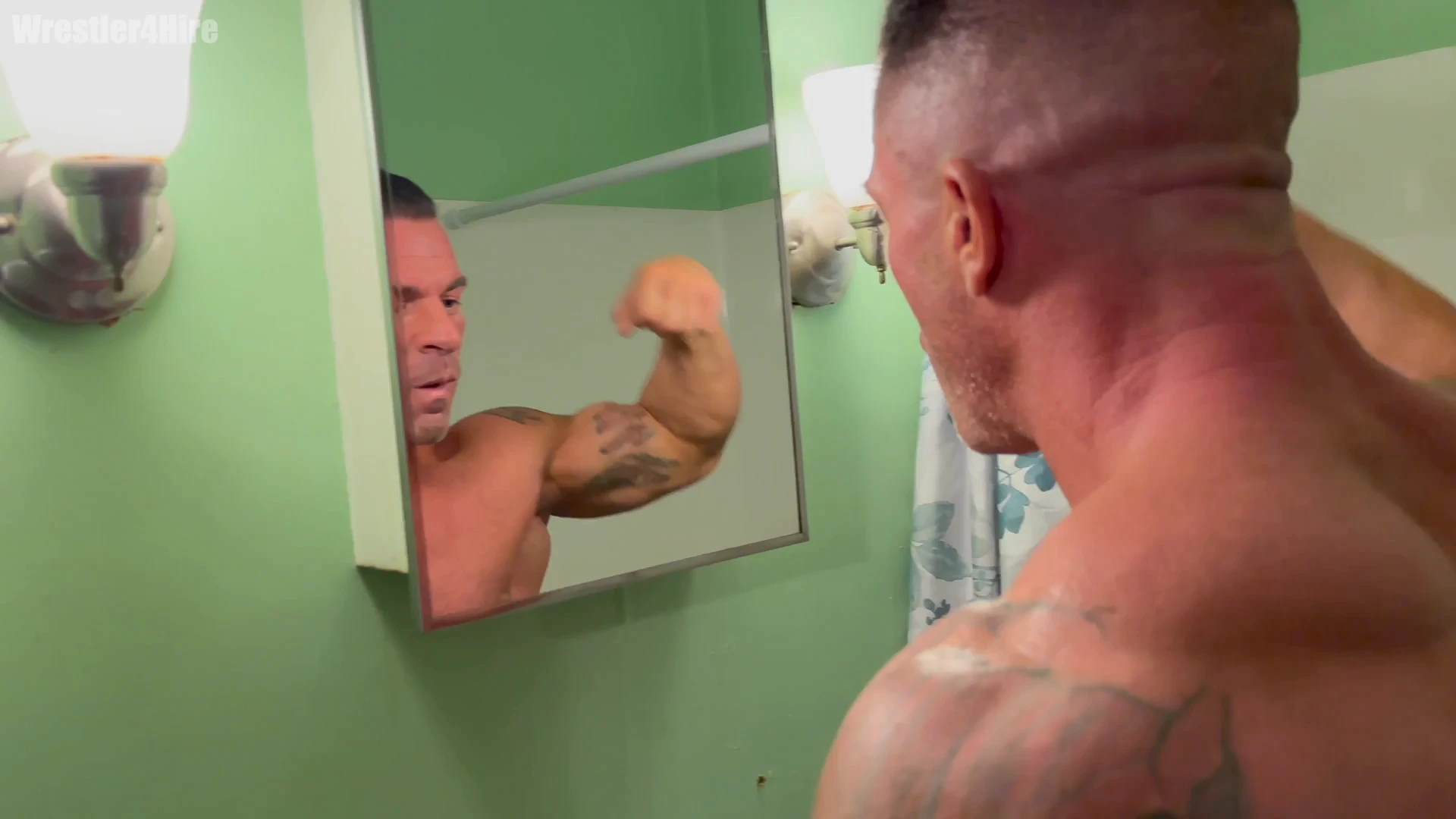Working up a light sweat that leaves his muscles glistening, Braden heads to the bathroom to check himself out in the mirror. Suddenly, he’s yanked out of the shower and dragged into the kitchen! The burly intruder Declin wastes no time, slamming Braden against the wall and unleashing a series of gut punches.