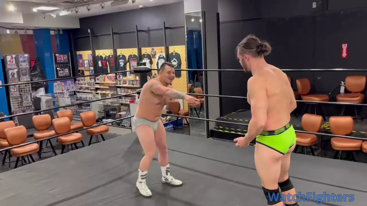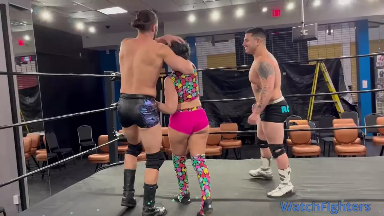 In one of my most outrageous matches. Vinny and myself take on Sharon in an inter gender handicap match. Only to have the tables turn as she uses a magic spell to have Vinny and myself take each other on in a one on one strip match.
