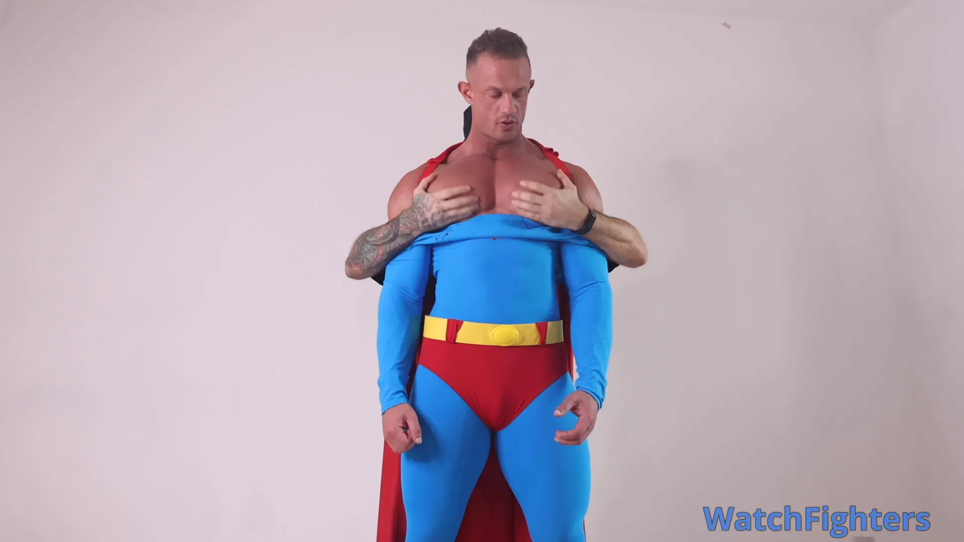 Superman's cock is stroked and played with and his incredible pecs.
