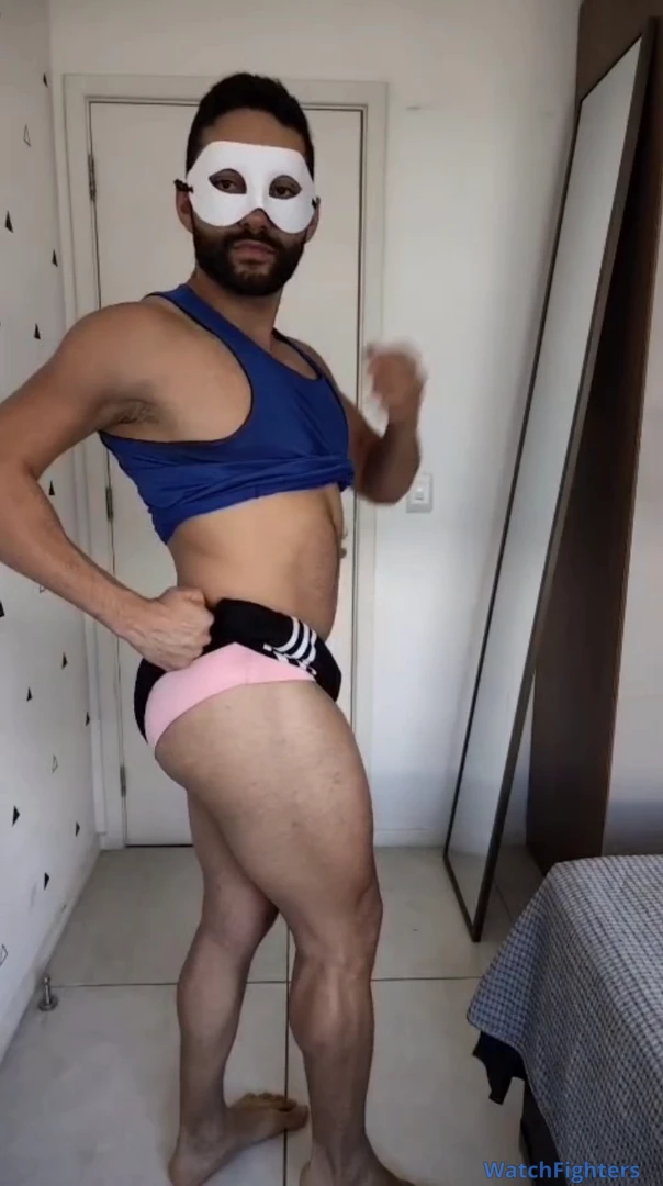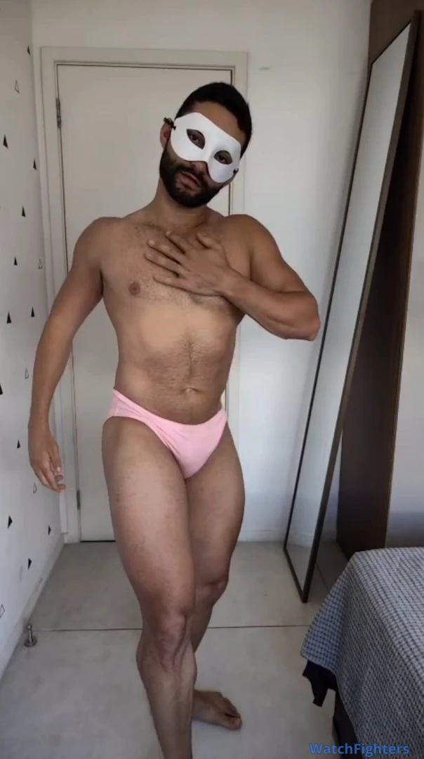 Gay afeminado exibindo seus grandes quadríceps musculosos