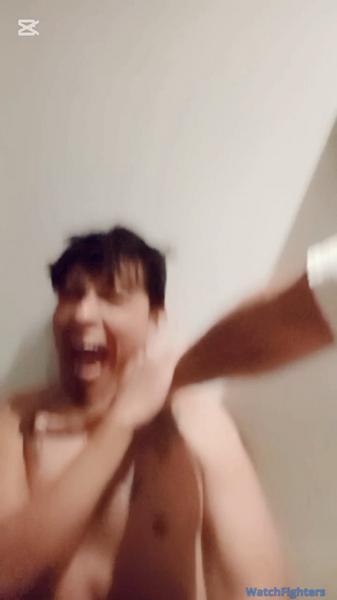 the boy fights Muay Thai and has a lot of skill and strength both have very strong bodies and get very sweaty during the fight!