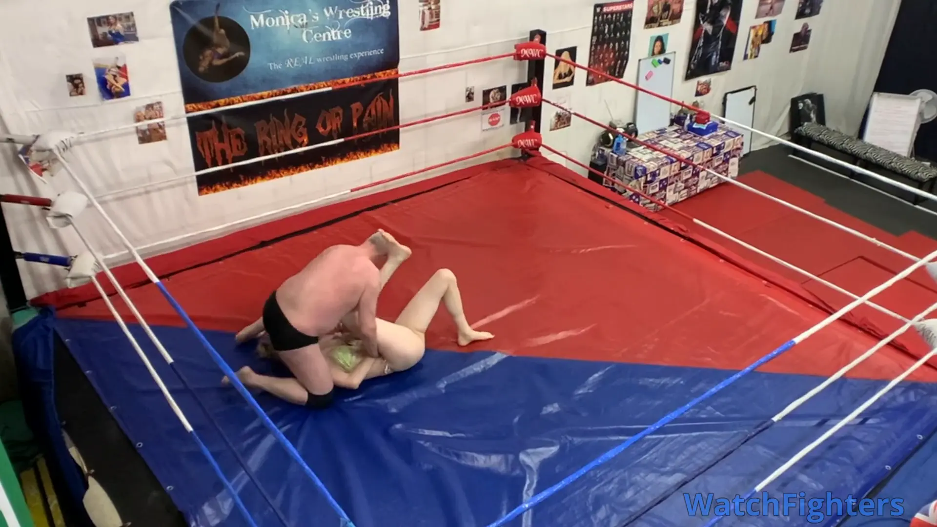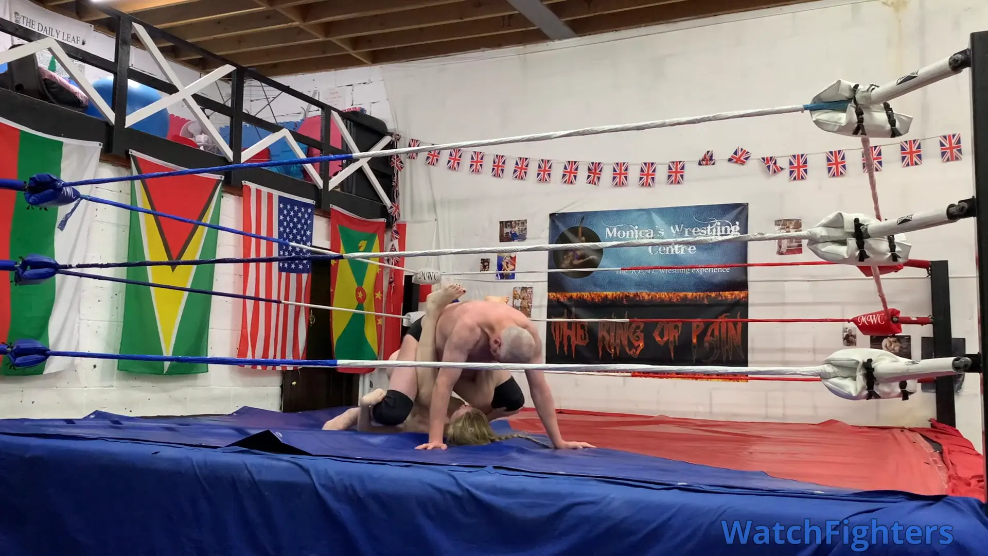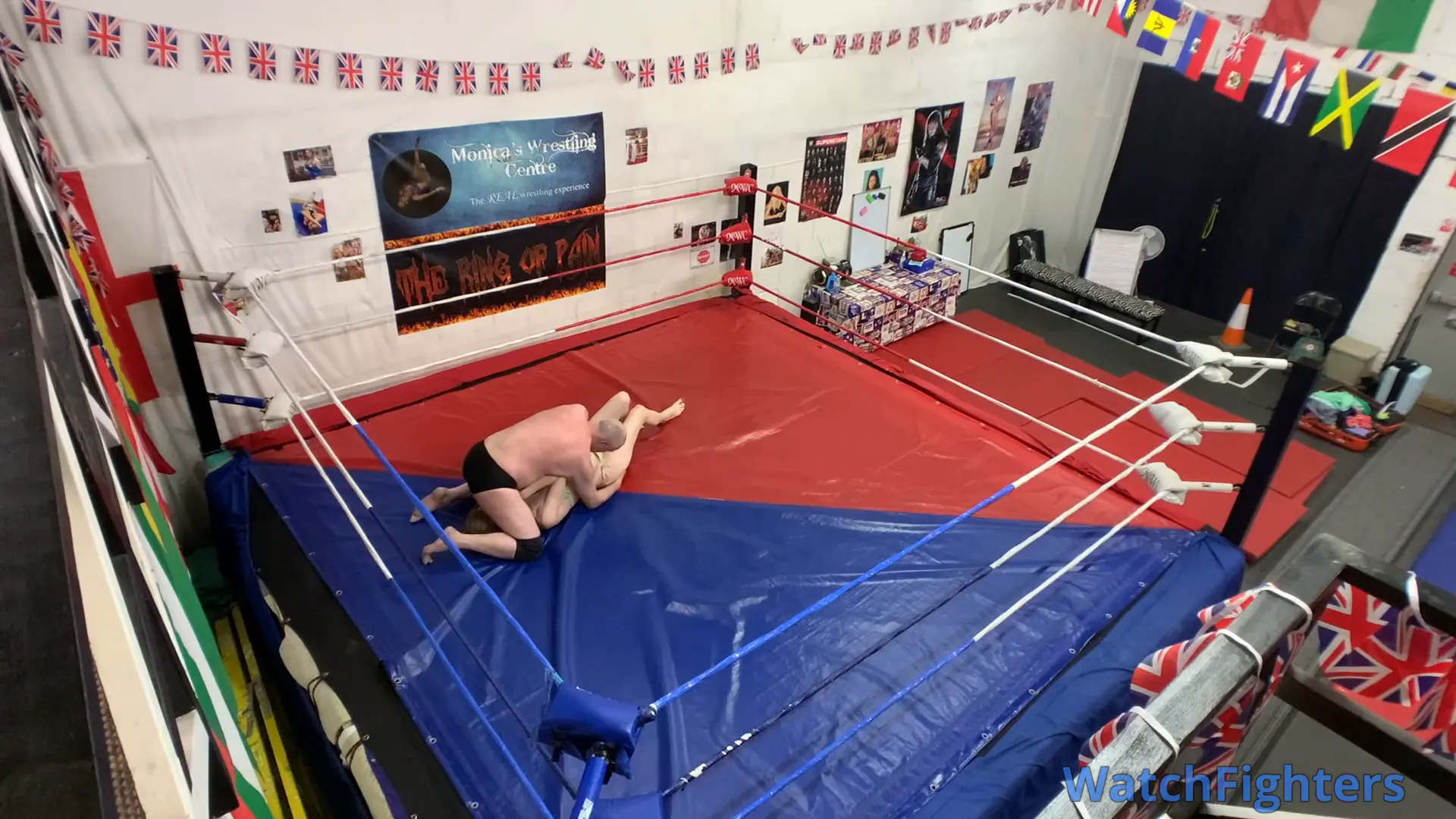 Action from a competitive mixed wrestling match featuring the statuesque amazon, Nausi v Stephen held at MWC London.