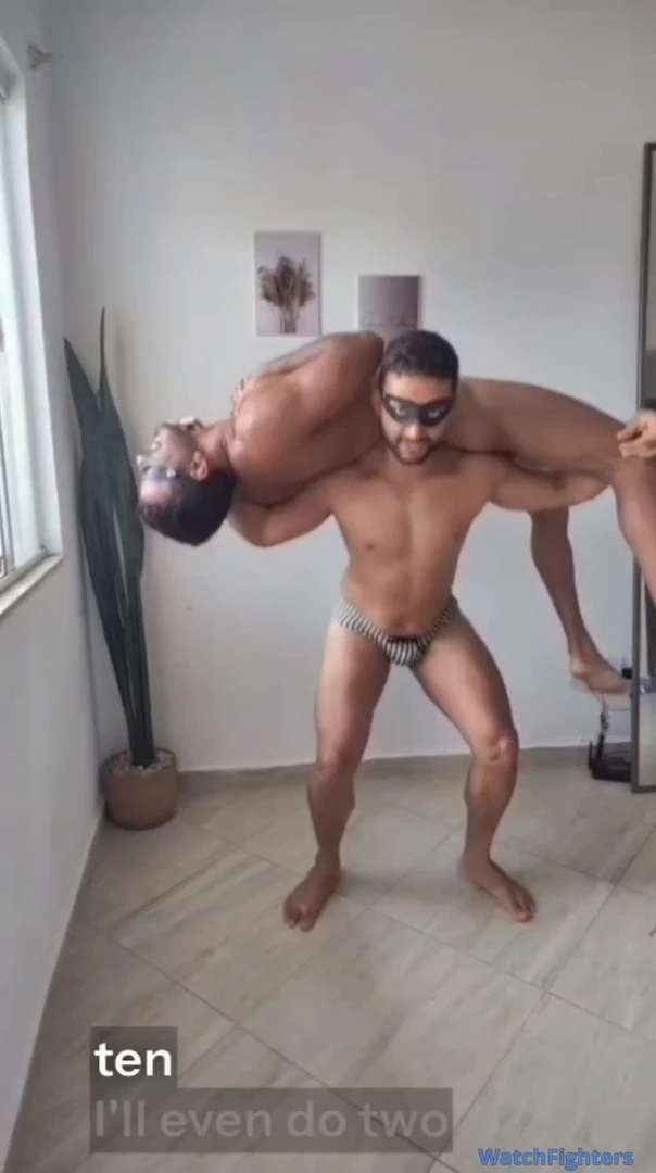 Fisiculturista usando o corpo do escravo para fazer vários agachamentos e no final põem o escravo para adorar suas pernas