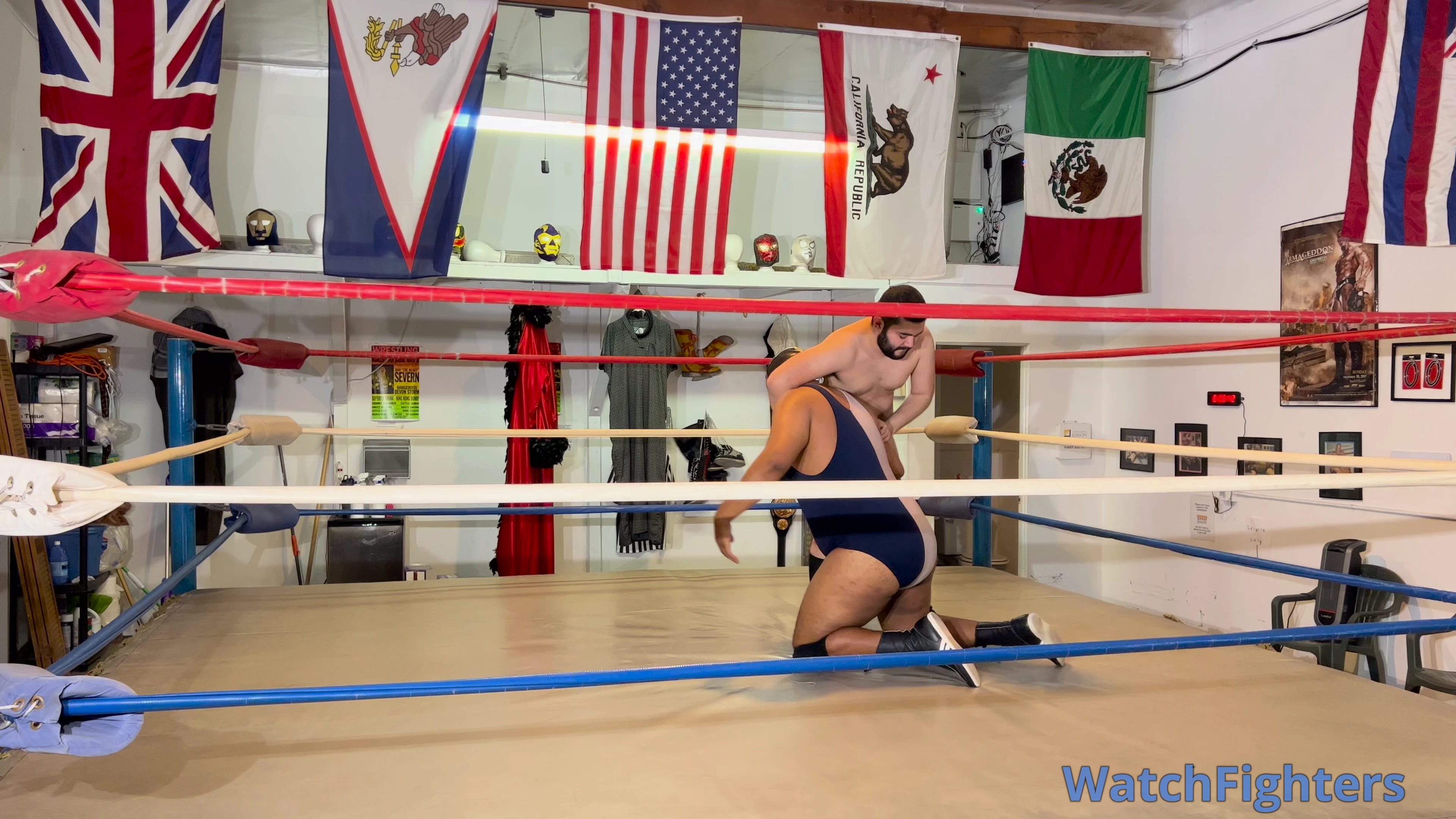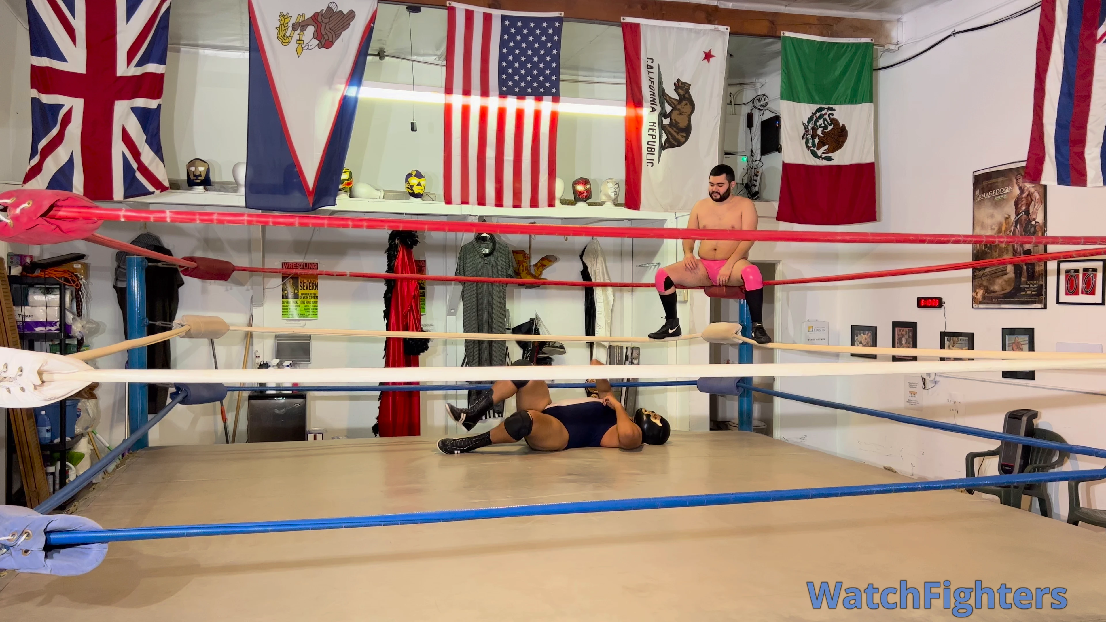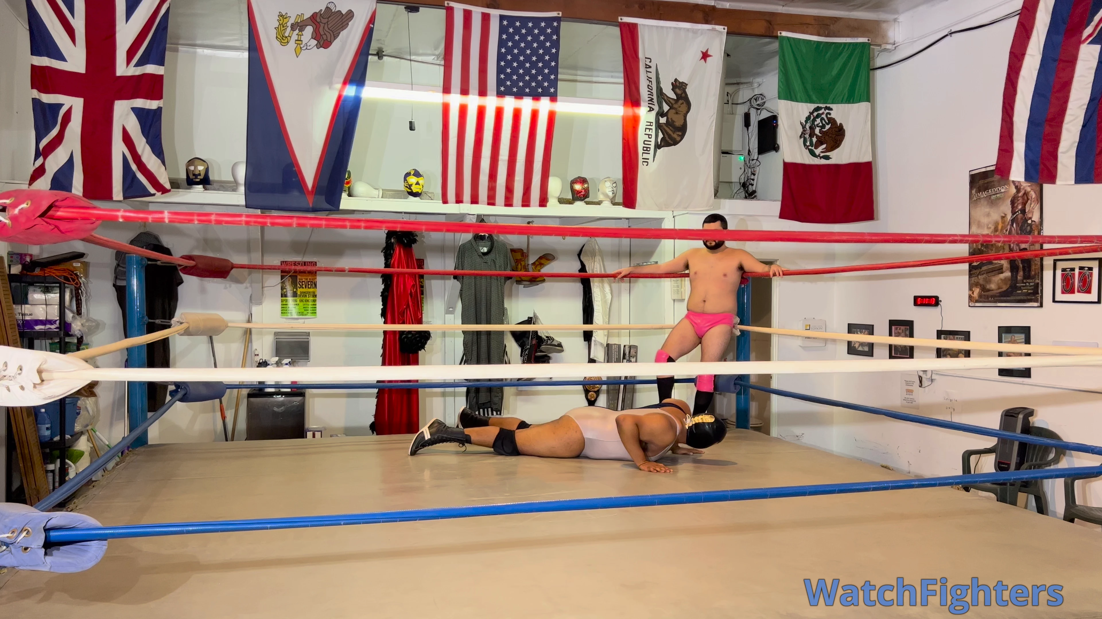The ring heats up as masked luchador Diego Garcia steps into battle against the SoCal Champion Danny Navarro — shining in pink trunks and gear, confident, cocky, and ready to show off.