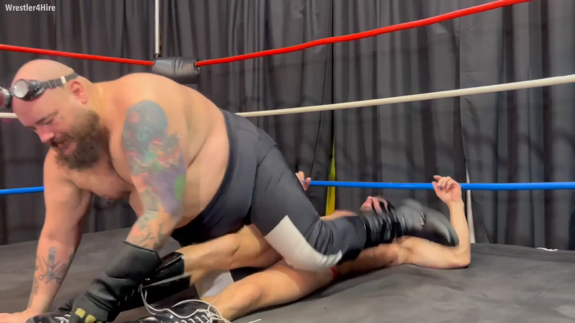 Maniacal strips off Cash’s black patent leather wrestling boots, socks, and wrestling gear - completely exposed and vulnerable to the sadistic plans of Dr. Maniacal