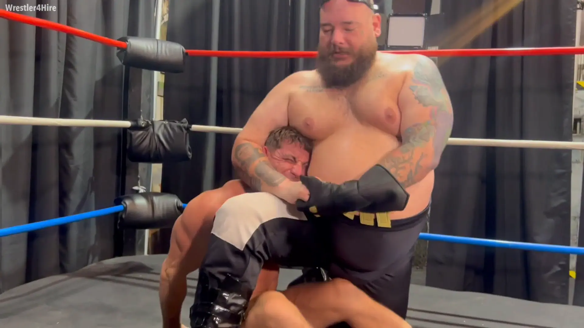 With a sinister smirk, he wastes no time, locking in a devastating Dragon Sleeper on Cash, bending the hunk back. Sweat drips down Cash’s heaving chest and abs as his muscles strain under the hold. Maniacal can’t resist the temptation—his greedy hand finds Cash’s bulging package, seizing it in a brutal grip.