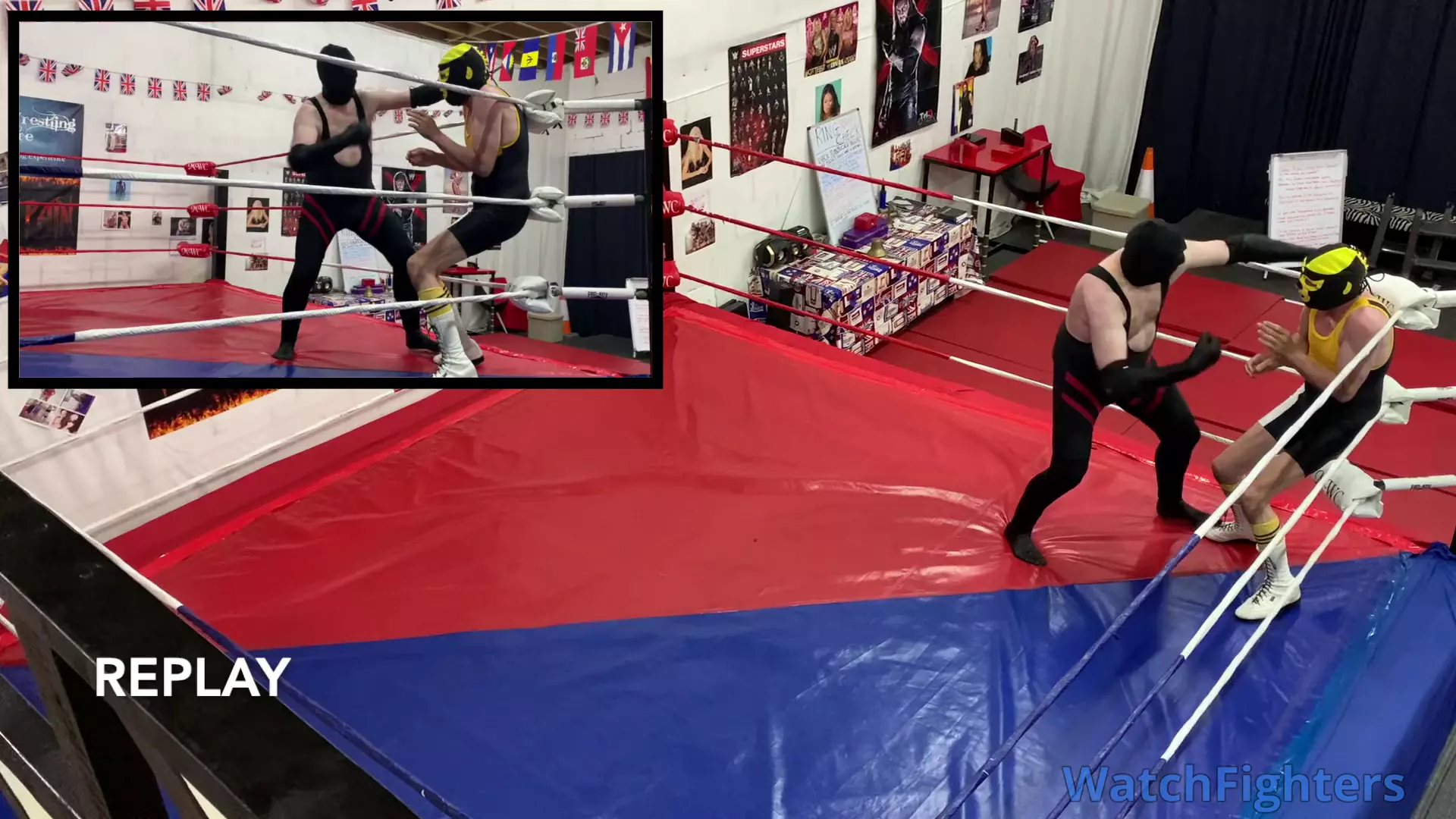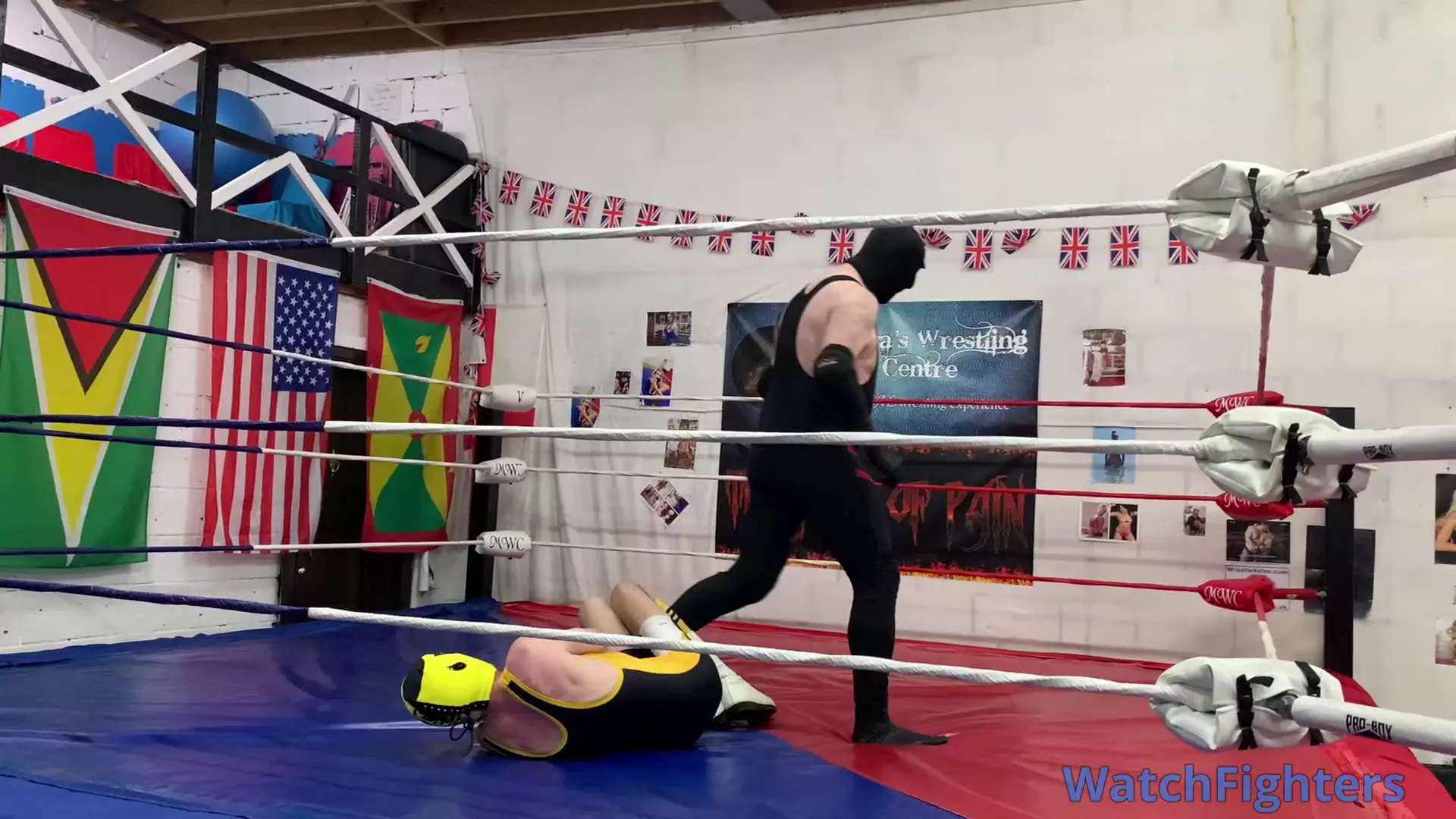 Action from a pro wrestling match featuring Flash v Ghoul held at MWC London.