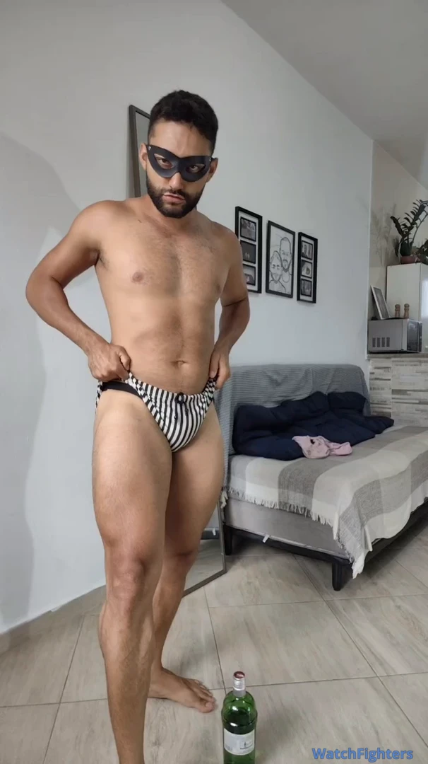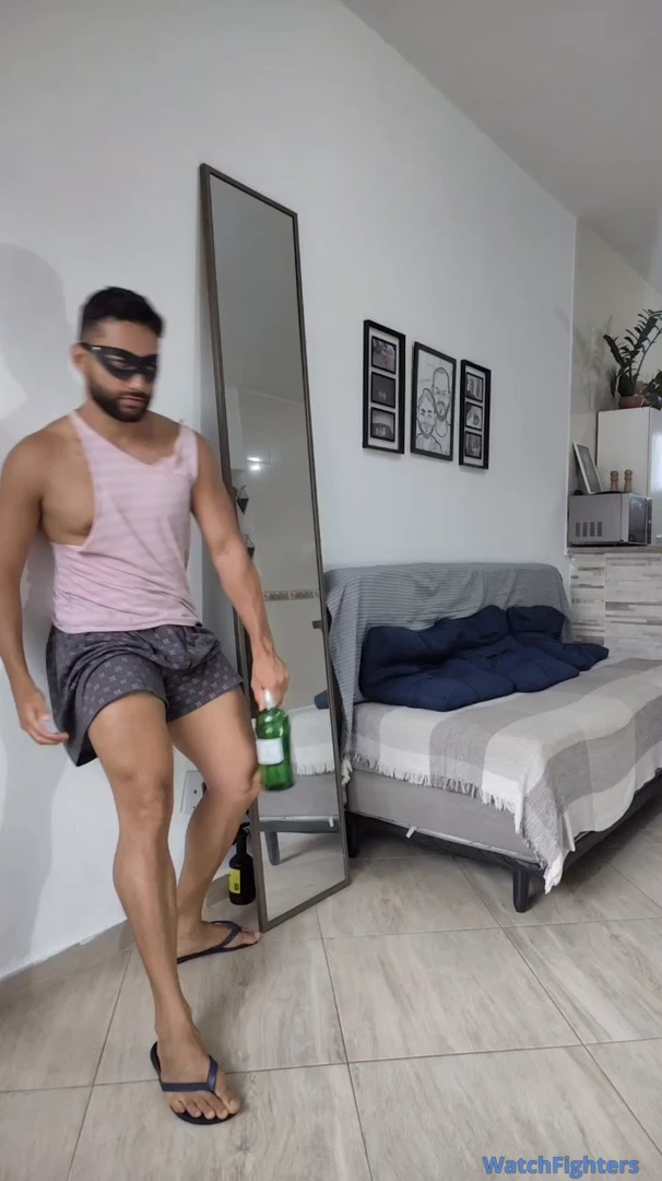 Mendigo bêbado mostrando como a vida na rua se defendendo de valentões deixou seus quadríceps musculosos