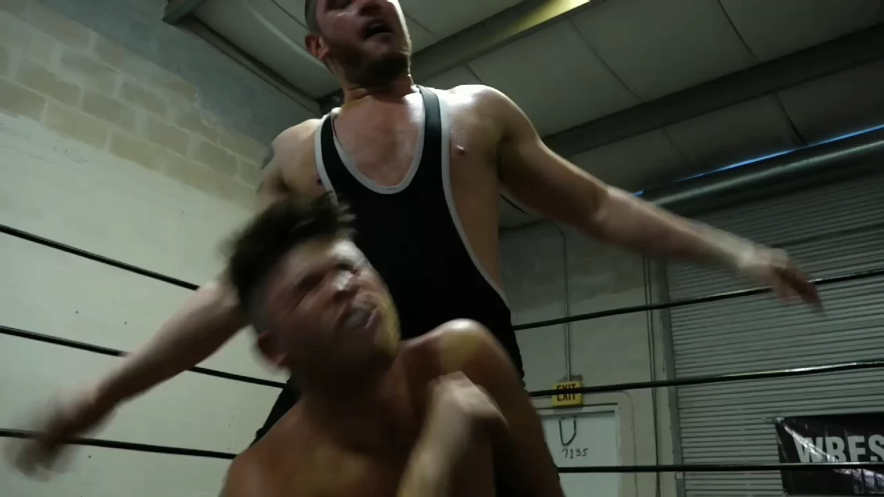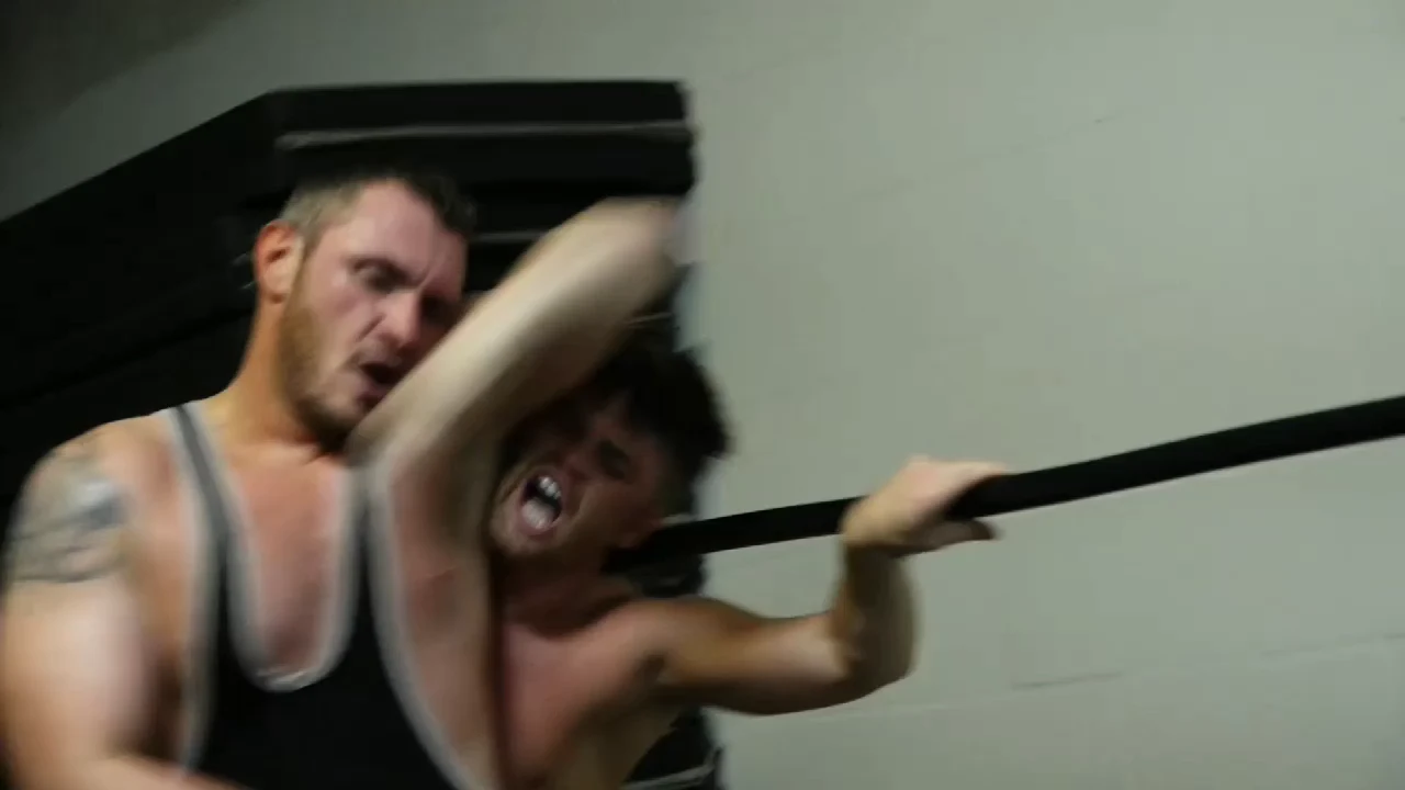 All you really need to know is that Justice knows exactly what he’s doing in the ring, and he’s going to stretch out, choke out, and slam out every ounce of Dawson’s manhood. And just when you think Dawson might get a little relief from a sleeper, Justice drags him back for more, wrapping his singlet strap around his neck. With Dawson flat out on the mat, Justice leans over, takes a whiff and proclaims, “That’s the smell of Vaseline and shame!” And what better way to teach Dawson what a real man smells like than to elbow drop onto his face up, heaving victim and grind his armpit right into his face.