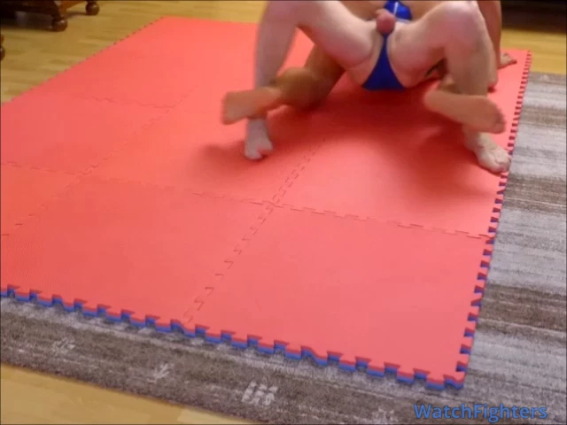 RingerBRB immediately throws me on the mat and sees that my cock and balls are already slipping out of my pants. He reaches there right away and has me firmly in his grip. But I can shake him off and throw myself at him. He defends himself with a firm grip on my balls and can dominate me again. I like the bulge in his G-string and also get his cock out. We lie belly to belly and feel our nakedness, toss and turn. But I stay below him and admit that I am inferior to him.