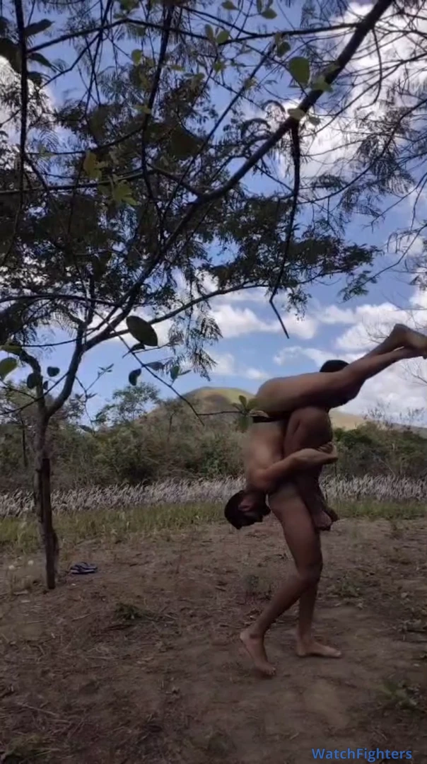 Briga brutal entre dois Tarzan com muitas chaves de pernas