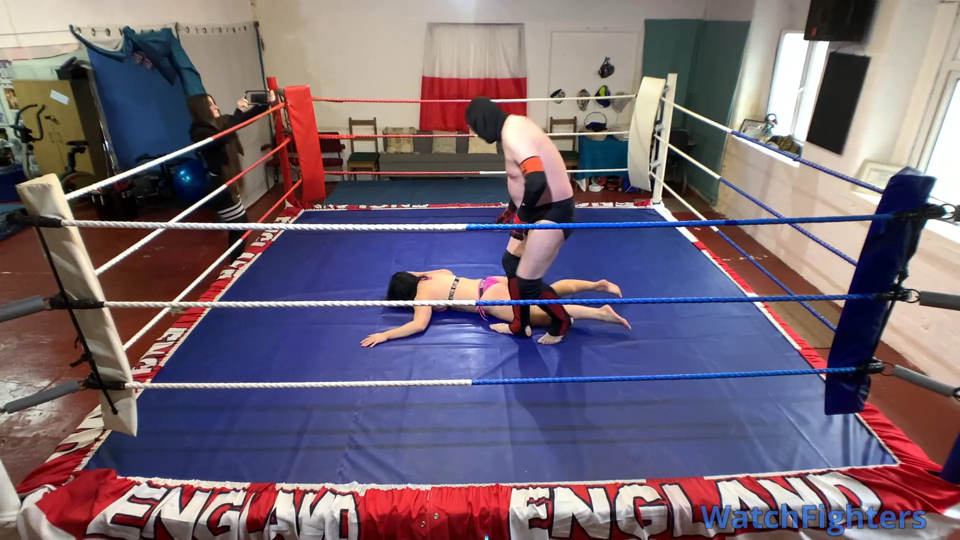 Action from a pro style mixed match featuring the strong female session wrestler, Raven v Ghoul held at TWF Manchester.