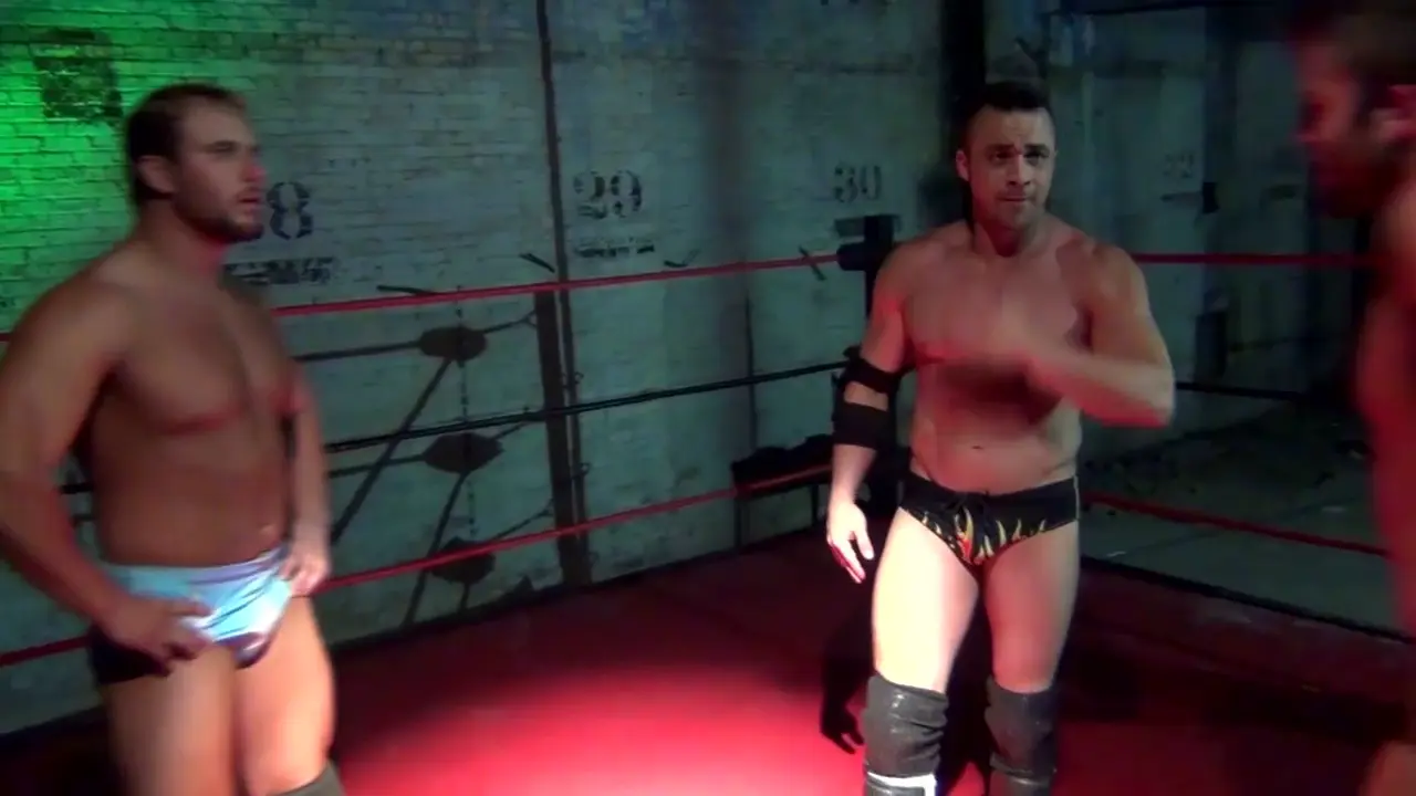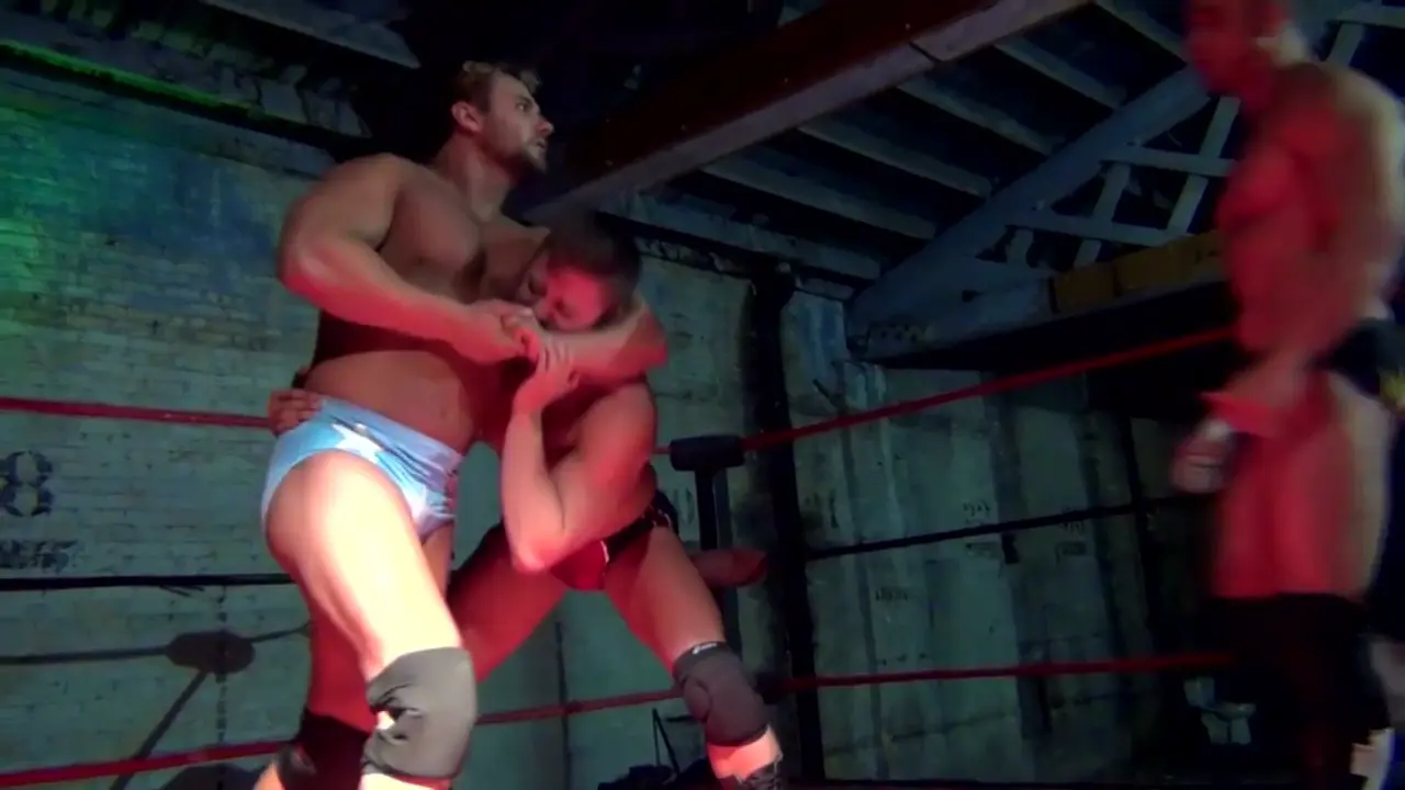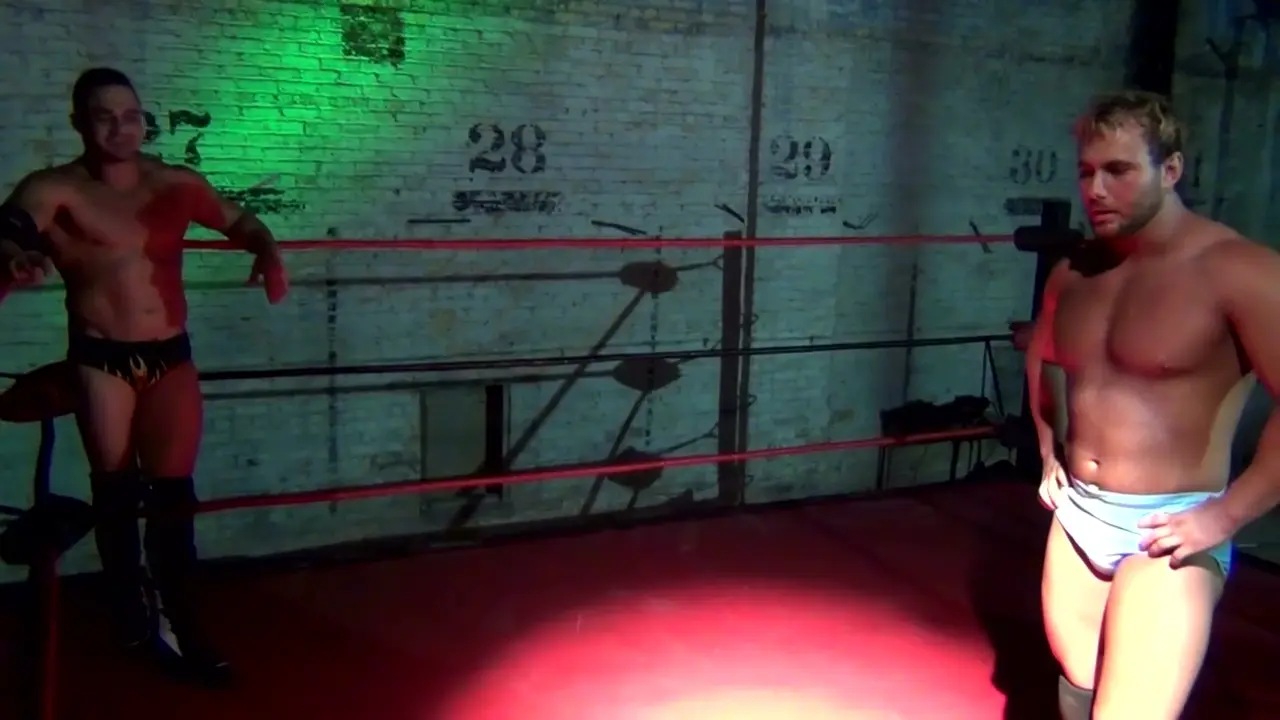 Male aggression, competition, and the need to oneup the other guy so often lead to some of the hardest, hottest, and dynamic fights around. Big, bold, and belligerent, Caleb Brand and Teddy Trouble dare one another to step up a level, comparing builds, push-up ability, strength, and stamina...until...