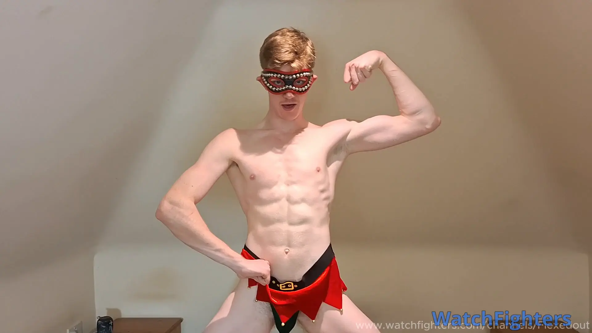 It's never too late for Santa! WILL comes bearing presents but not wrapped in paper as you would think. He arrives wrapped only in a tiny Santa's little helpers costume and can't wait to start his little posing show and to be as cocky as he pleases and with a look to show who's the boss!