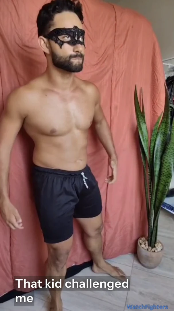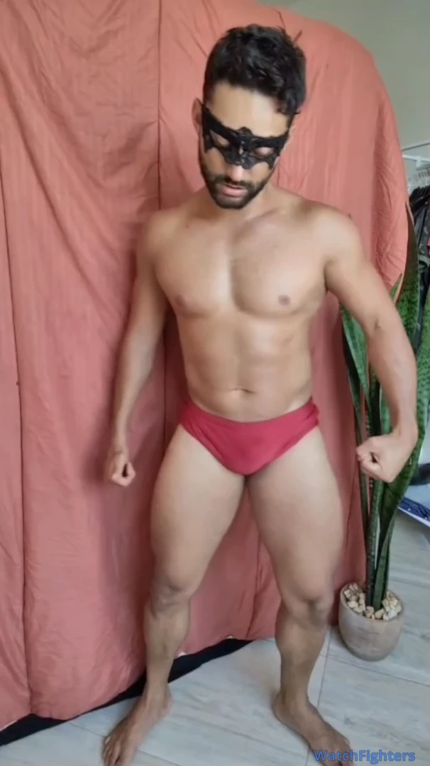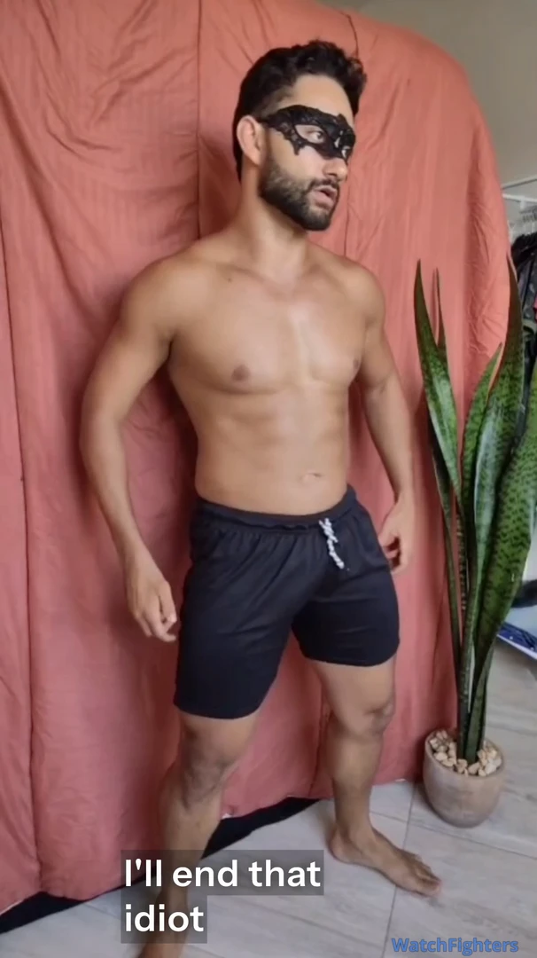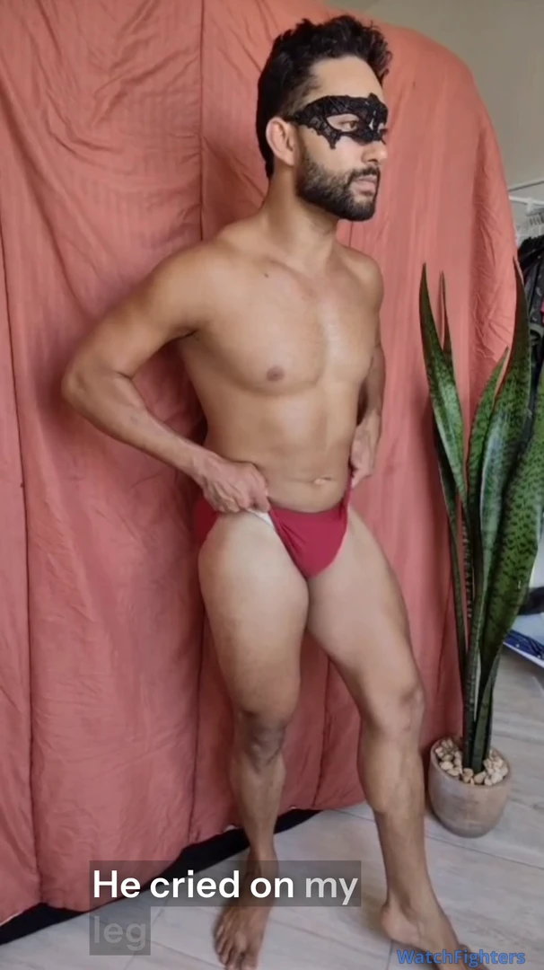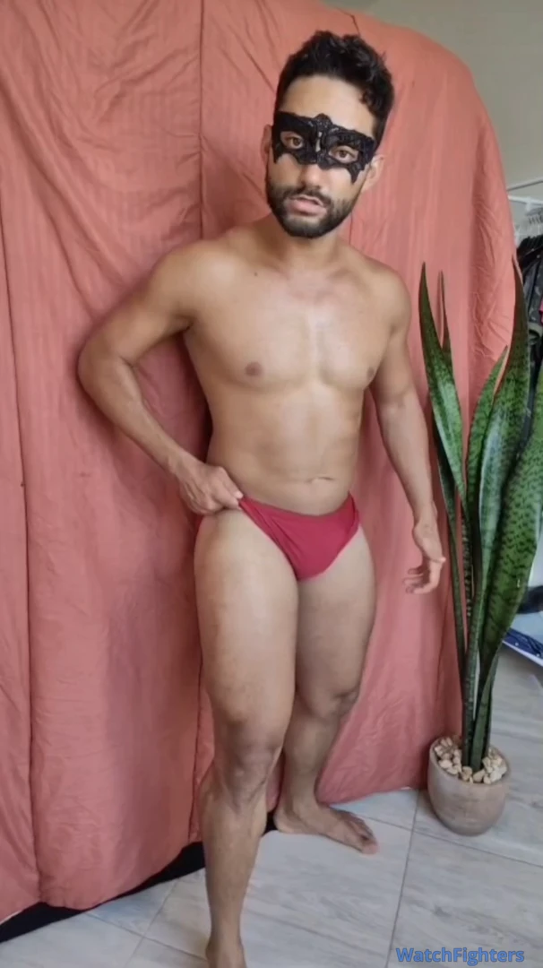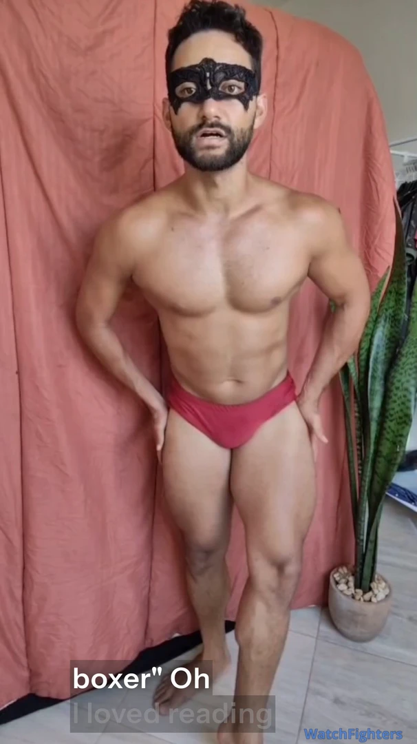 Boxeador marrento exibindo seu corpo musculoso e falando como destruí seu oponente com várias tesouras corporais