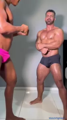 Pietro and I meet again. Punches, oil, showing off, lifting and carrying and touching well built muscles!