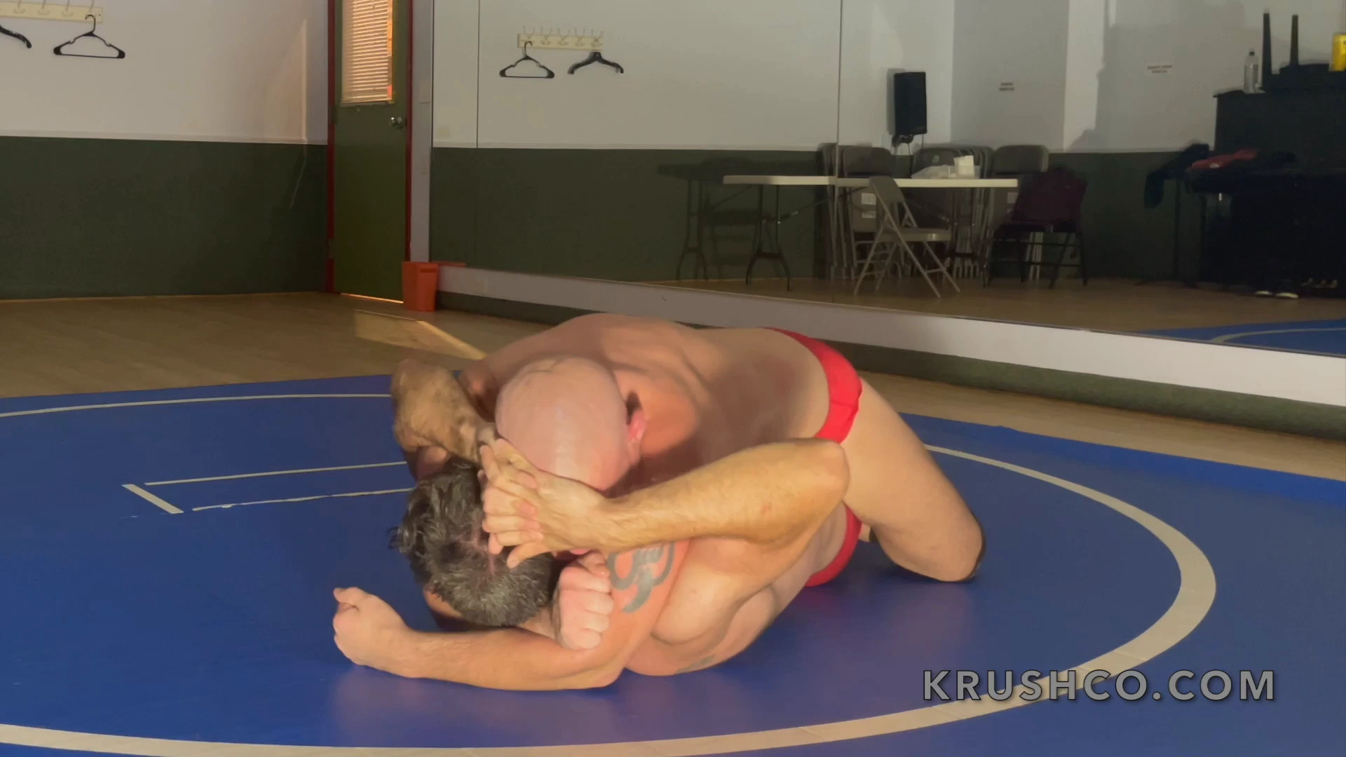 Damon and I continue to wrestle in red speedos, rough and sweaty, with lots of face-to-face, crotch-to-crotch clinches and submission holds...