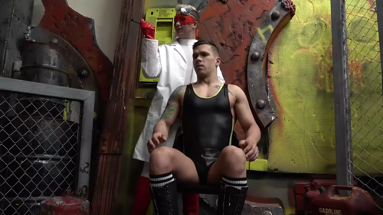 With no superpowers to rely on, Lightning Lad is then tied to a torture rack and injected again and again, the Doctors potion draining the life force out of each and every muscle he has- his legs, his arms, and finally his nuclear nuts!