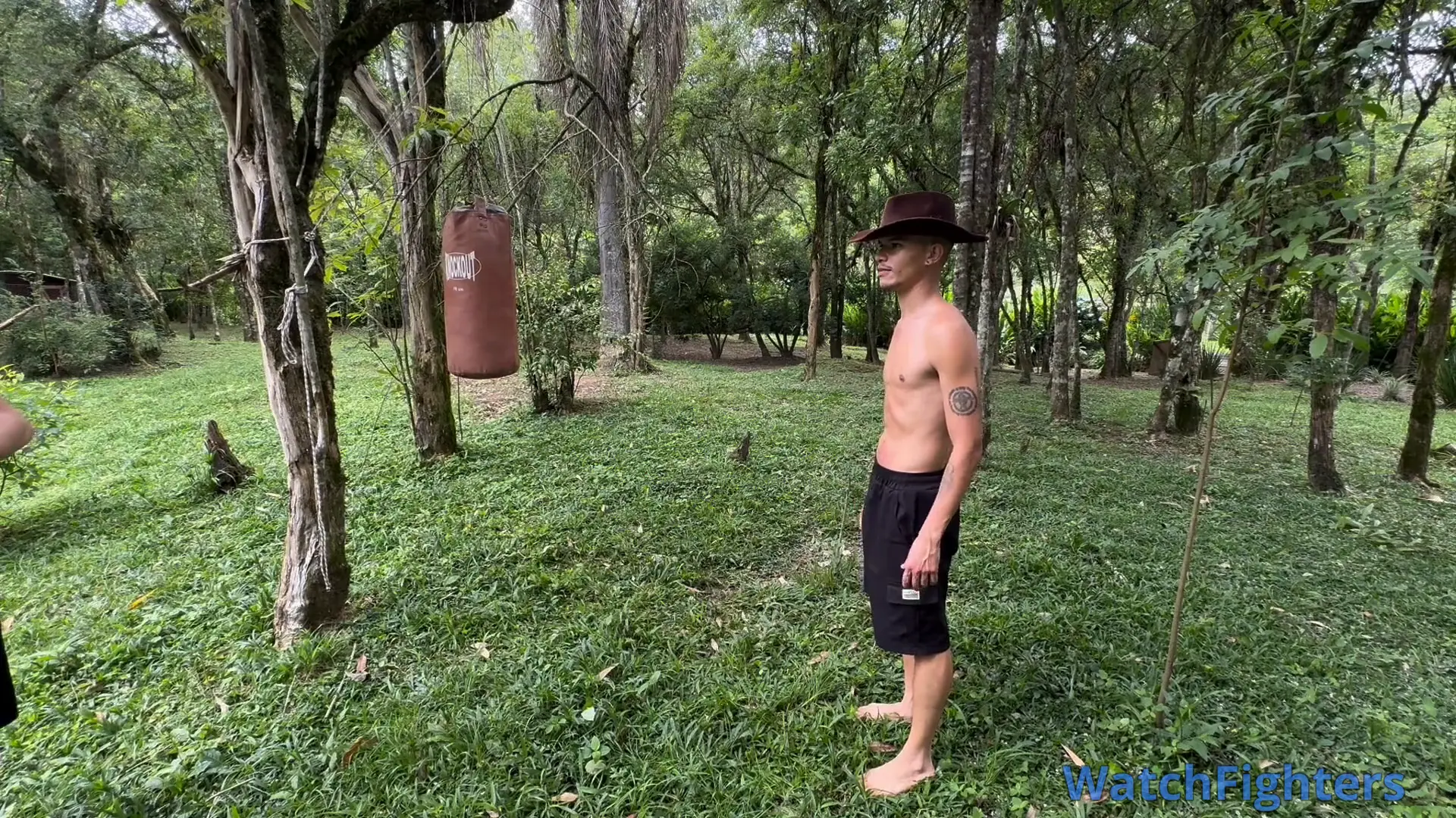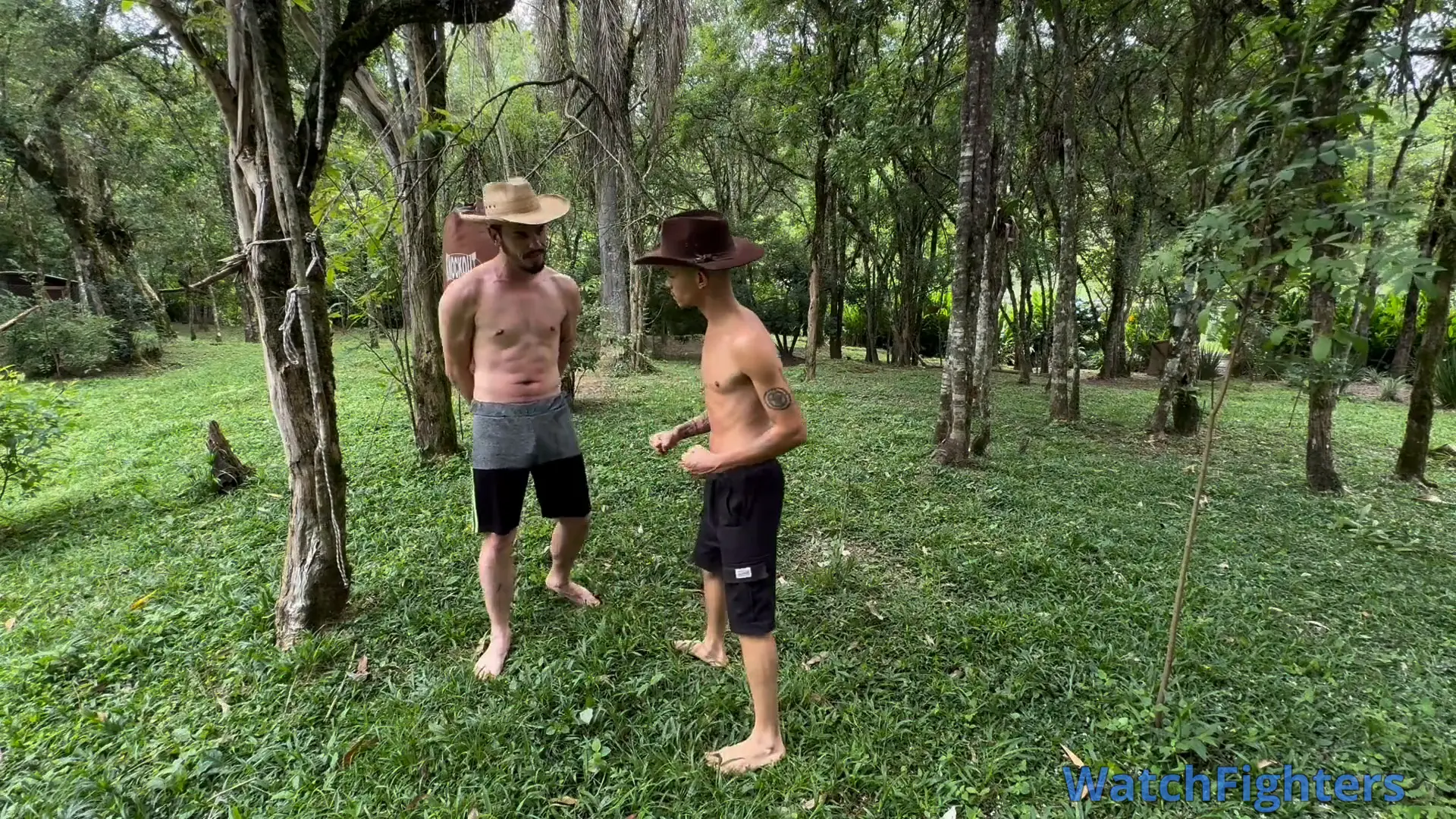 Part III CowboyYuriBr Vs MattHeyder in a farm . We stop for a while to training hard gut punching.