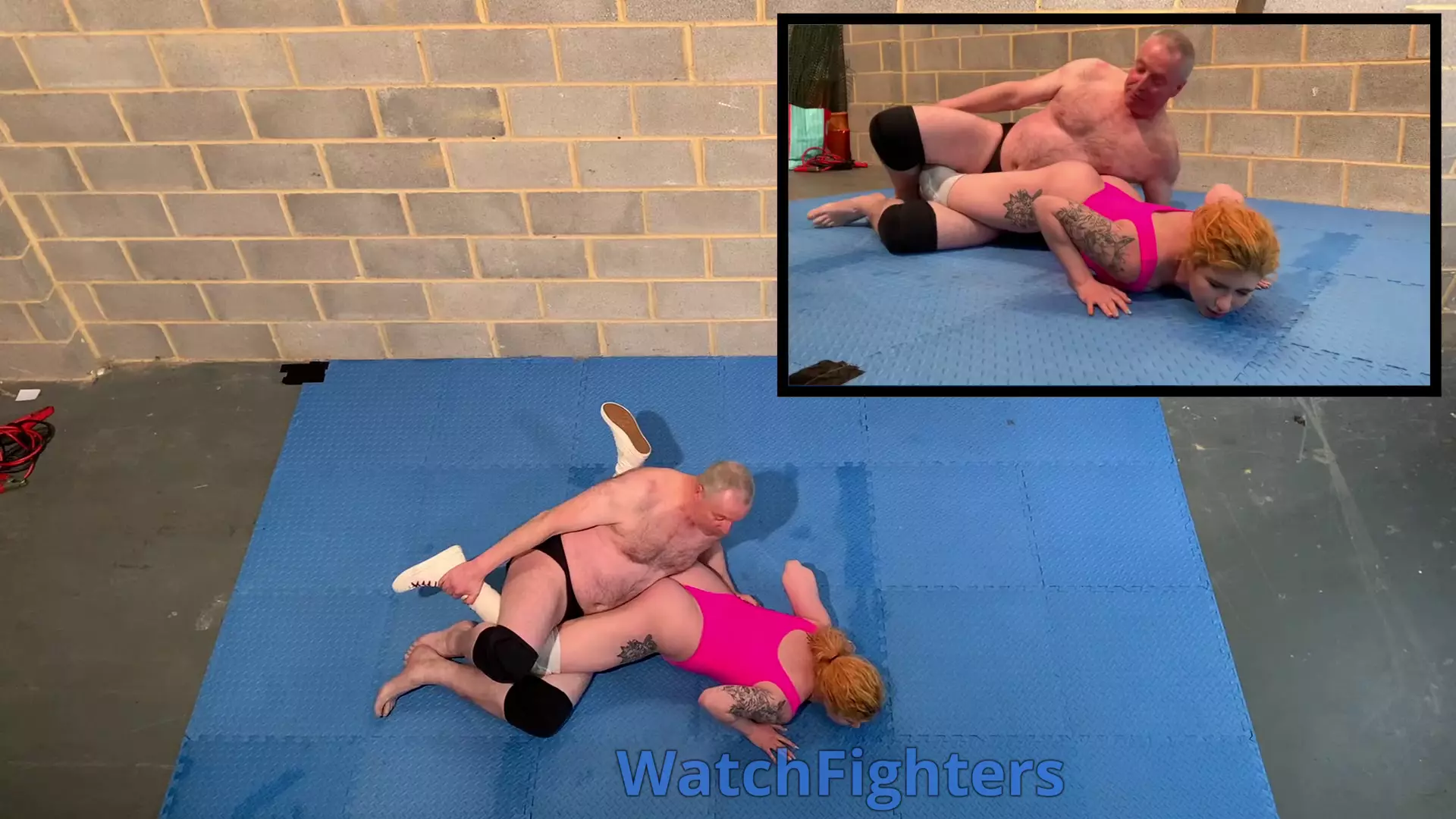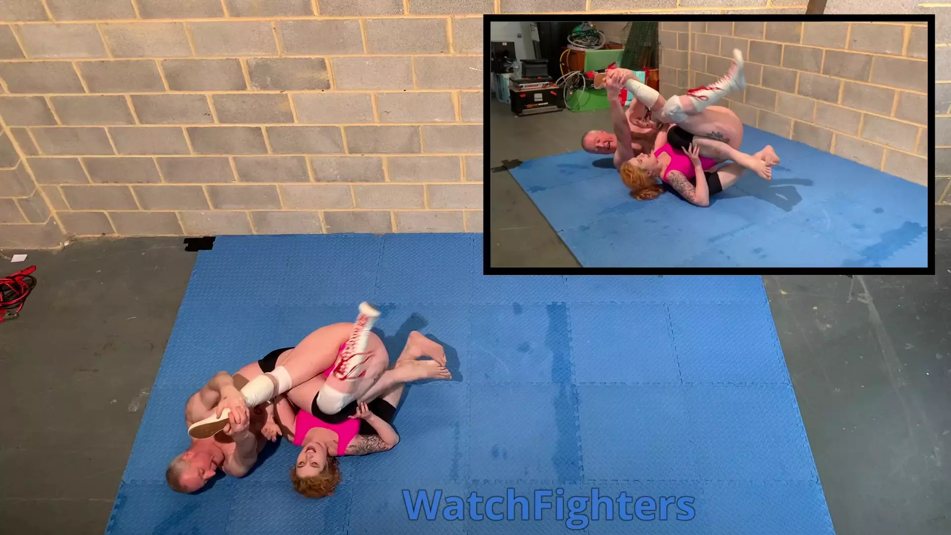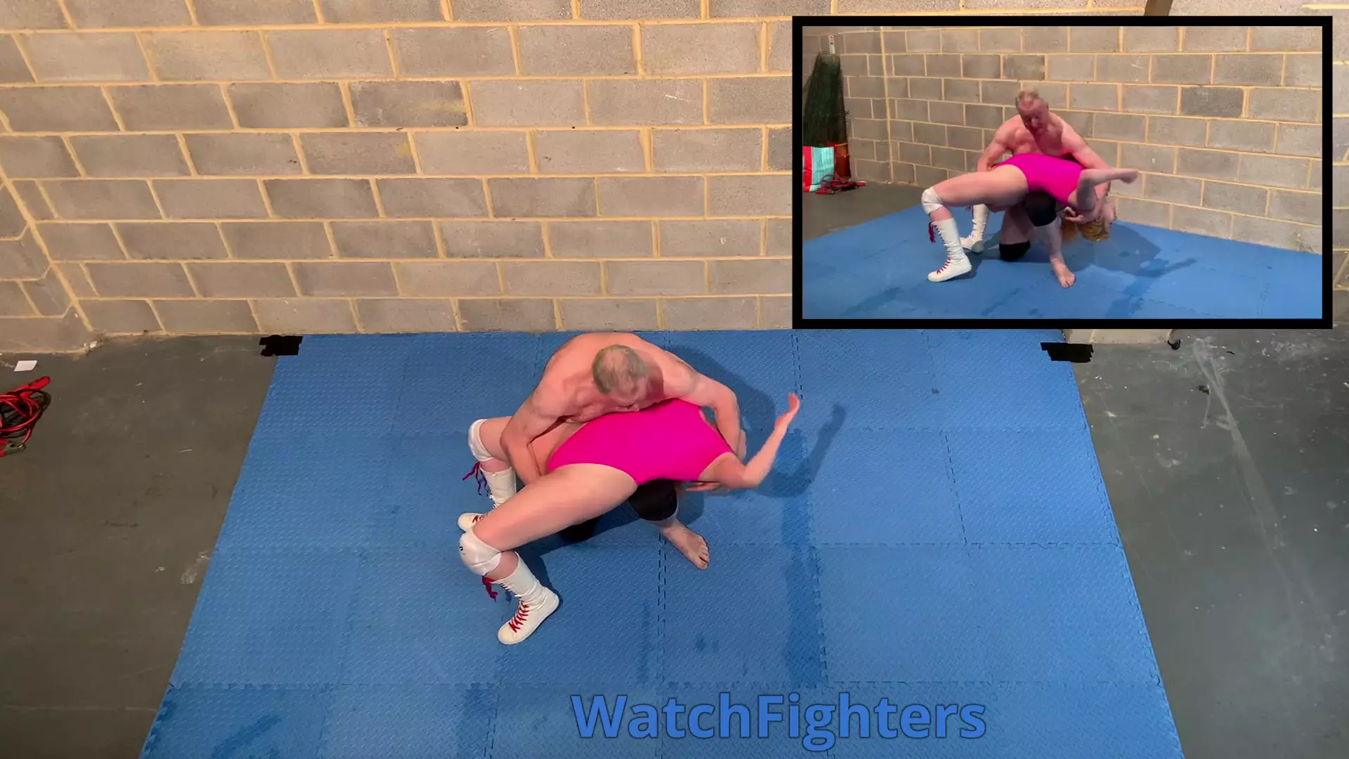 Action from a mixed wrestling match featuring Rosie Gia v Stephen held at BH7.