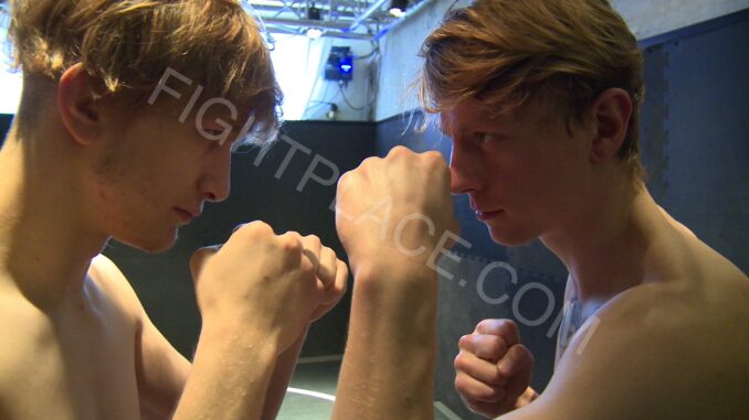 Under a small pretext, Moe manages to lure Mika to the club. He suggests practicing the weigh-in that normally takes place before an official match. When Mika arrives, Moe has already warmed up with a weight-training session. He briefly explains that he wants to rehearse the weigh-in and the intense face-off that comes with it. Everything goes according to Moe’s plan. They step into the fight room, strip down to their underwear, and go through the weigh-in procedure. Standing head to head, staring deep into each other’s eyes, neither of them can suppress their fighting spirit any longer. They hit the mats.
