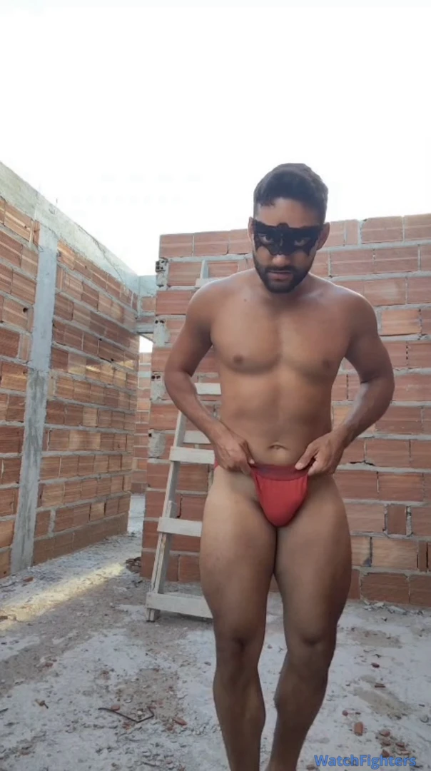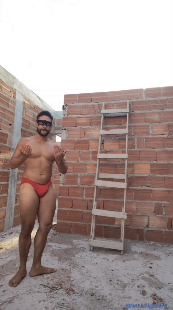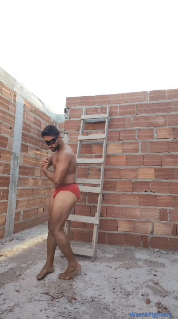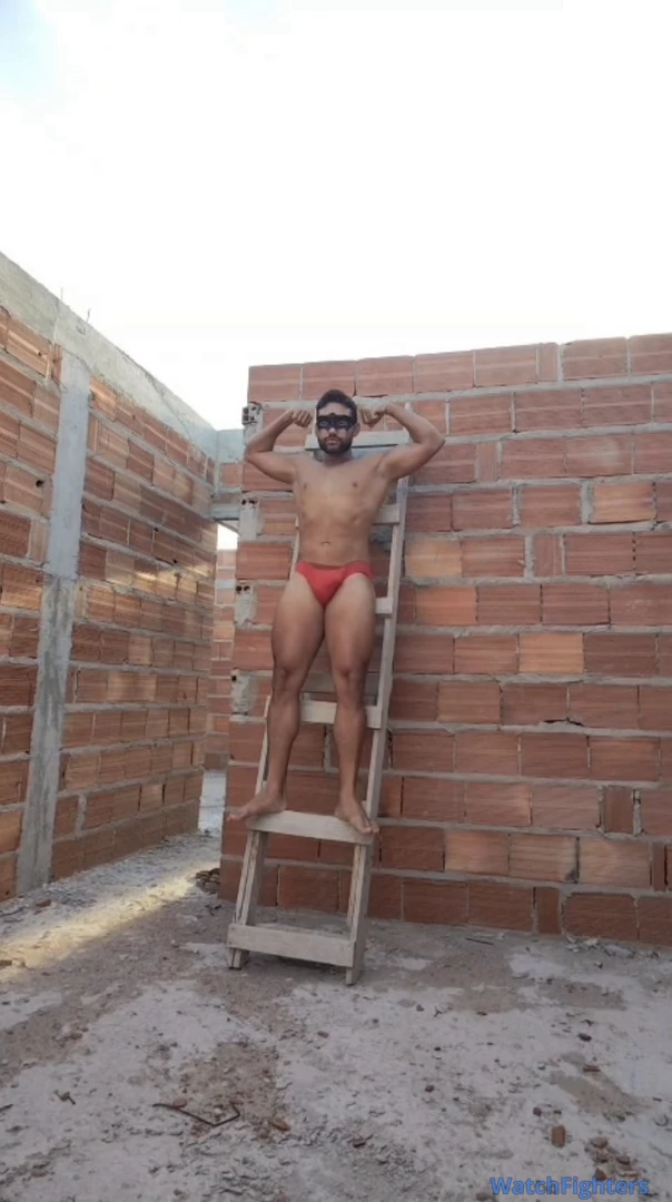 Pedreiro exibindo como seus quadríceps ficaram gigantes depois de um dia de trabalho