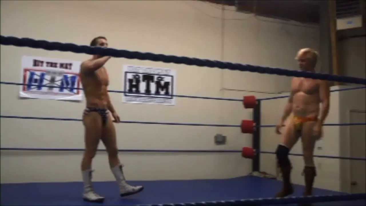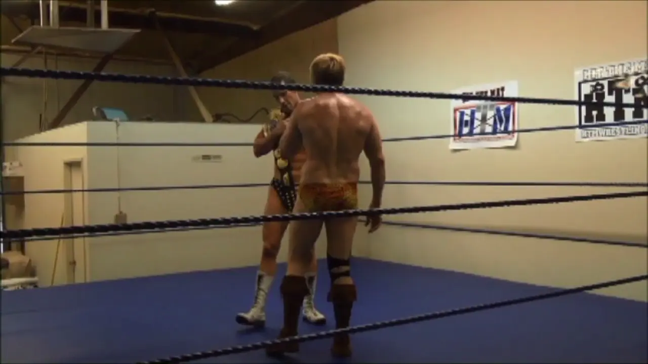 Tarzan Brock is in the ring when Cameron enters wearing one of his many championship belts he has won over the years. Tarzan tries a little intimidation on Cameron but anyone who has ever seen the Champ wrestle knows that he can’t be intimidated and, in fact, he usually gives it back two-fold. What follows is a mostly promission mat match with the best out of 9 being declared the winner. Brock gets off to a quick start and gets the first fall.