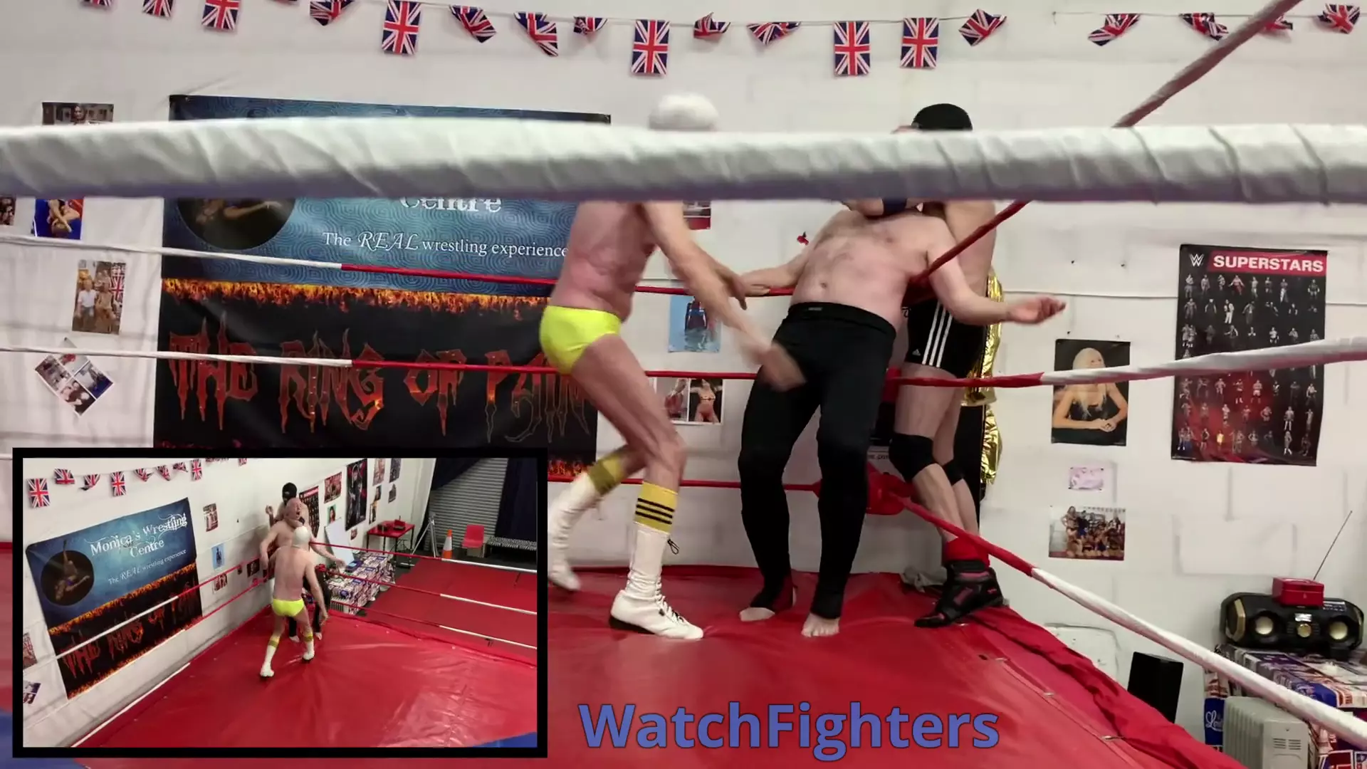 Action from a pro wrestling handicap (2v1) rematch featuring Flash & Mark v Stephen held at MWC London.