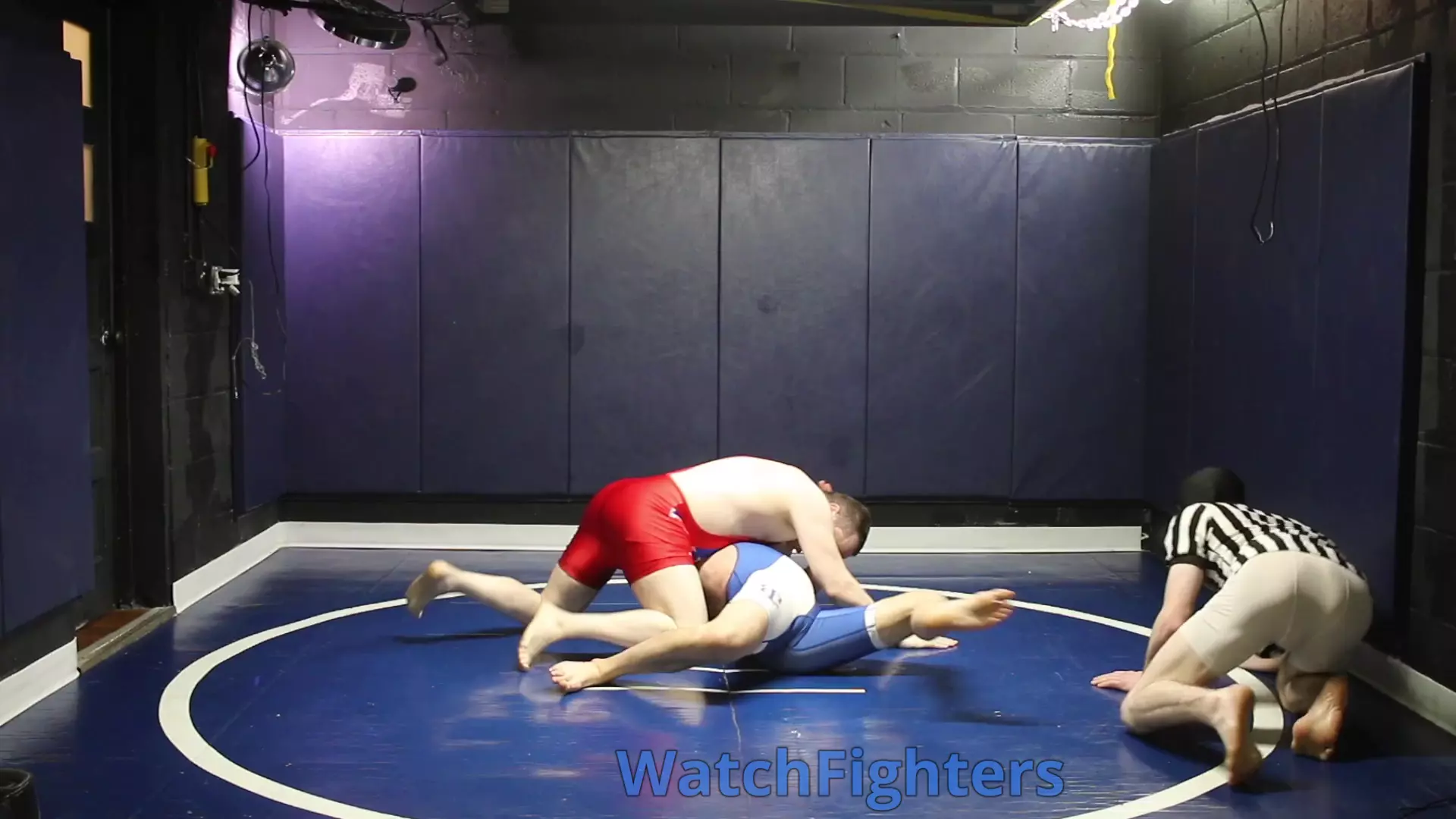 Daddy and Muscles wrestle it out in singlets on the mat with a ref calling the pin.
