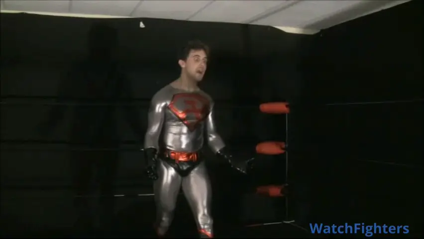 Across the city, aspiring hero Bryce is gearing up in his father’s treasured super suit to join the fight against the rising forces of evil. Bryce quickly learns it’ll take more than courage and honor to defeat the ranks of villainous brutes infesting the city. Bryce naively asks for help from a muscle bound passerby, who to his dismay is the freshly escaped super criminal, Punish Man(Brad Barnes). Punish man shows the uninitiated hero how he earned his name, as he stretches, slams, and tosses a helpless Bryce, whose only hope is to last long enough for his super suits powers to manifest.