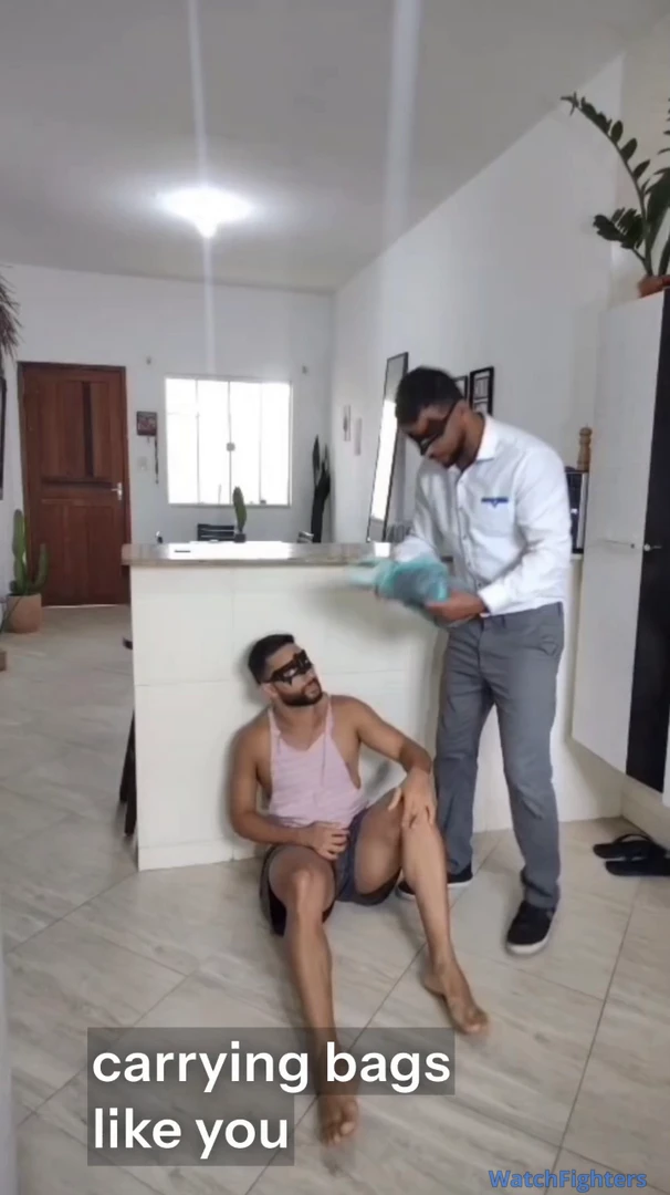 Mendigo aplicando tesouras corporais até esmagar o empresário rico