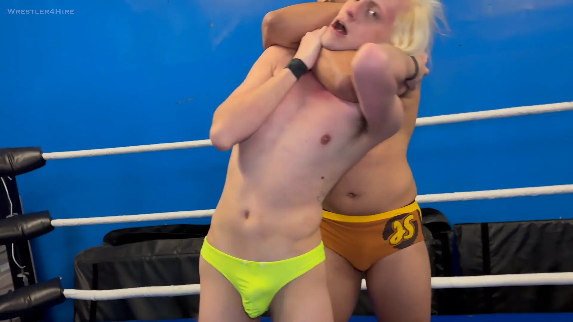 In a flash, Kayden's world is flipped. A vice-like sleeper hold clamps around his neck, leaving him squirming, gasping, and utterly at the mercy of his powerful opponent. The bigger, stronger heel relishes every second of domination, expertly squeezing Kayden into submission, knocking him out cold time after time—only to cruelly wake him up for more punishment.