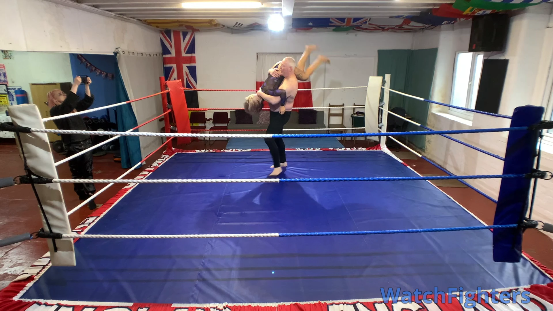 Action from a pro style mixed wrestling match featuring Little Monster v Stephen held at TWF Manchester.