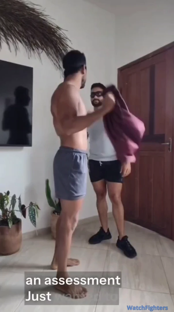 Personal trainer medindo as pernas e destruindo seu aluno marrento com várias tesouras corporais