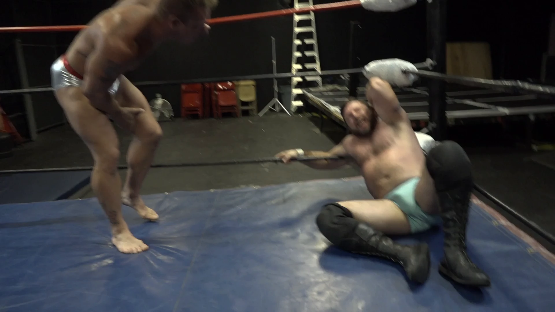The match spills out of the ring as Baldwin finds himself on the gym floor. Sensing an opportunity, Firestorm goes after his prey, slamming his back in the ring post, placing Tristan in a tight camel clutch on the ringside mats, and controlling the match. Finally able to deliver a piledriver, Tristan is unable to recover and Jonny counts a 1, 2, 3 on the fallen grappler, placing his foot squarely on Baldwin's crotch. Telling Baldwin to clean up all the sweat in the ring, Jonny exits leaving Tristan lying in the ring, the loser to Firestorm once again. Two giants of the underground wrestling world face each other once again, and the viewers are the winners!