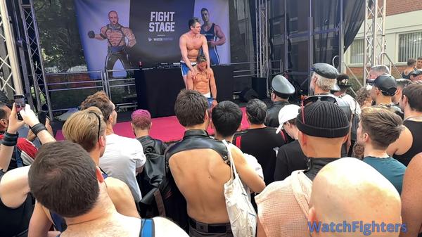 As Adam Stone comes back to clean up the wreckage from the first match, Tarz Lando pulls a quick one and turns the tables. Stripping Adam down and ordering a load out of Adam as punishment. Both men know what Tarz wants, and Adam doesn't have much of a choice but to follow his orders. Adam's muscles on display, forced to obey as Tarz holds him in place.