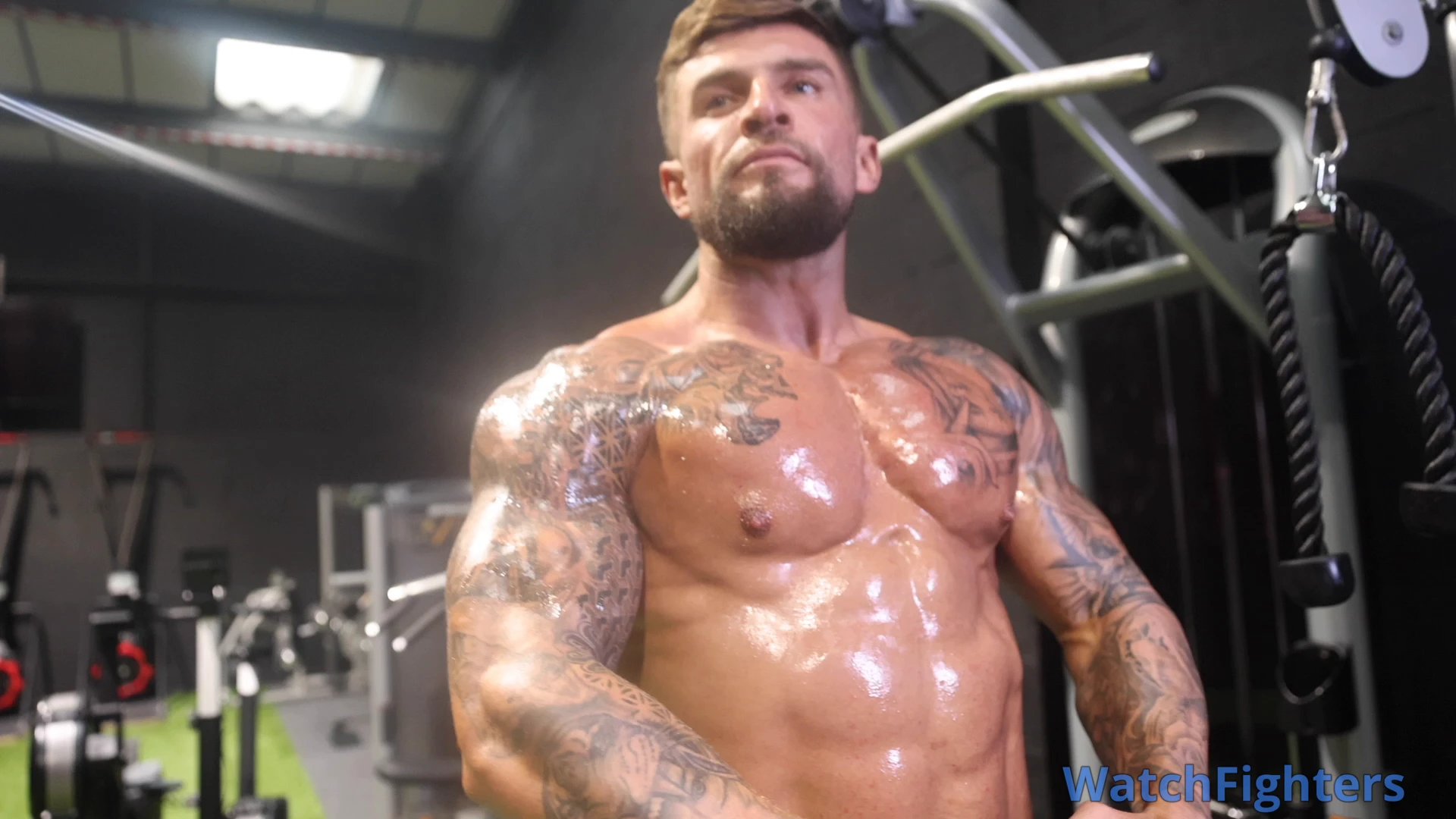 confident Musclehunk is training in the gym and gets clockstopped and muscle worshipped