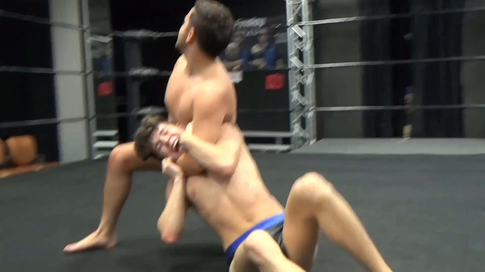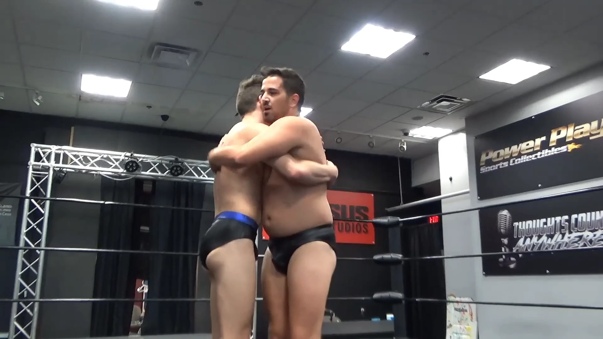 Aaron is testing the ropes when he comes across Drake Vaughn, whom he politely asks to remove himself from the ring. Drake suggests that Aaron leave instead and Aaron agrees to. As he is leaving, Aaron extends a hand for a handshake and when the two do, Aaron sneak attacks the surprised young twink Drake and the bout is on.