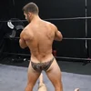 Blayne, barely contained in his little Tarzan bikini, flips the script on Blain O'Connor, insisting the newcomer worship his body, muscle by muscle. Each new stretch hold requires Blain to pay homage to a different body part; legs, pecs, abs, arms, back. The rookie's mind gets overwhelmed by Blayne's dominating orders as he revels in submitting to his opponent's every demand. Neither combatant's gear does very much to hide how much they enjoyed this match.