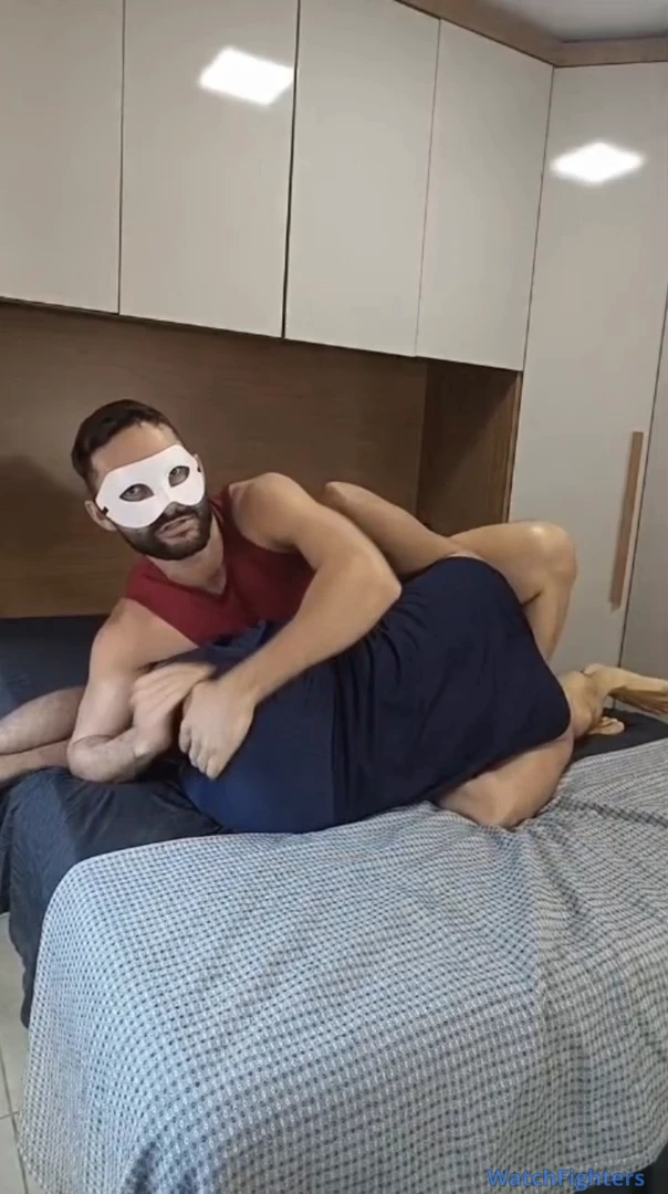 Dois machos lutando e disputando quem faz o outro ficar de pênis duro primeiro