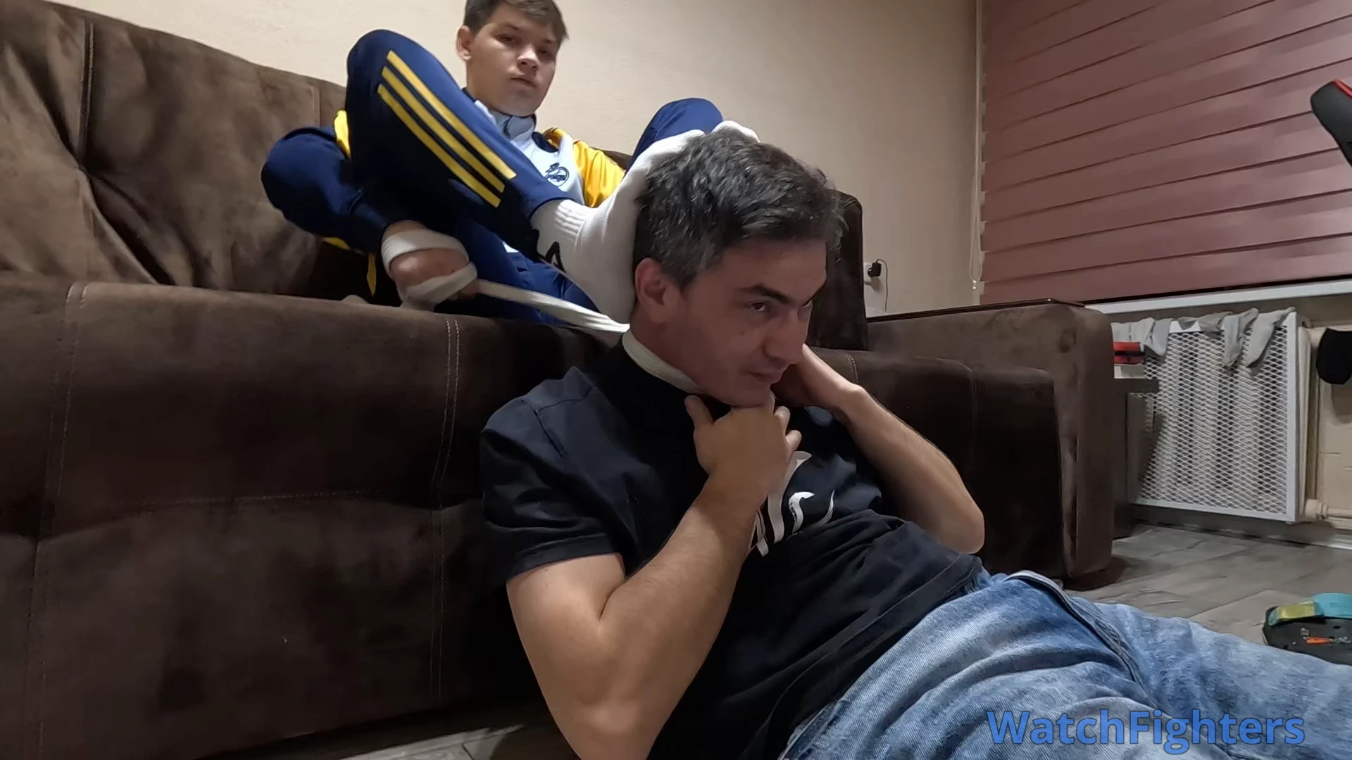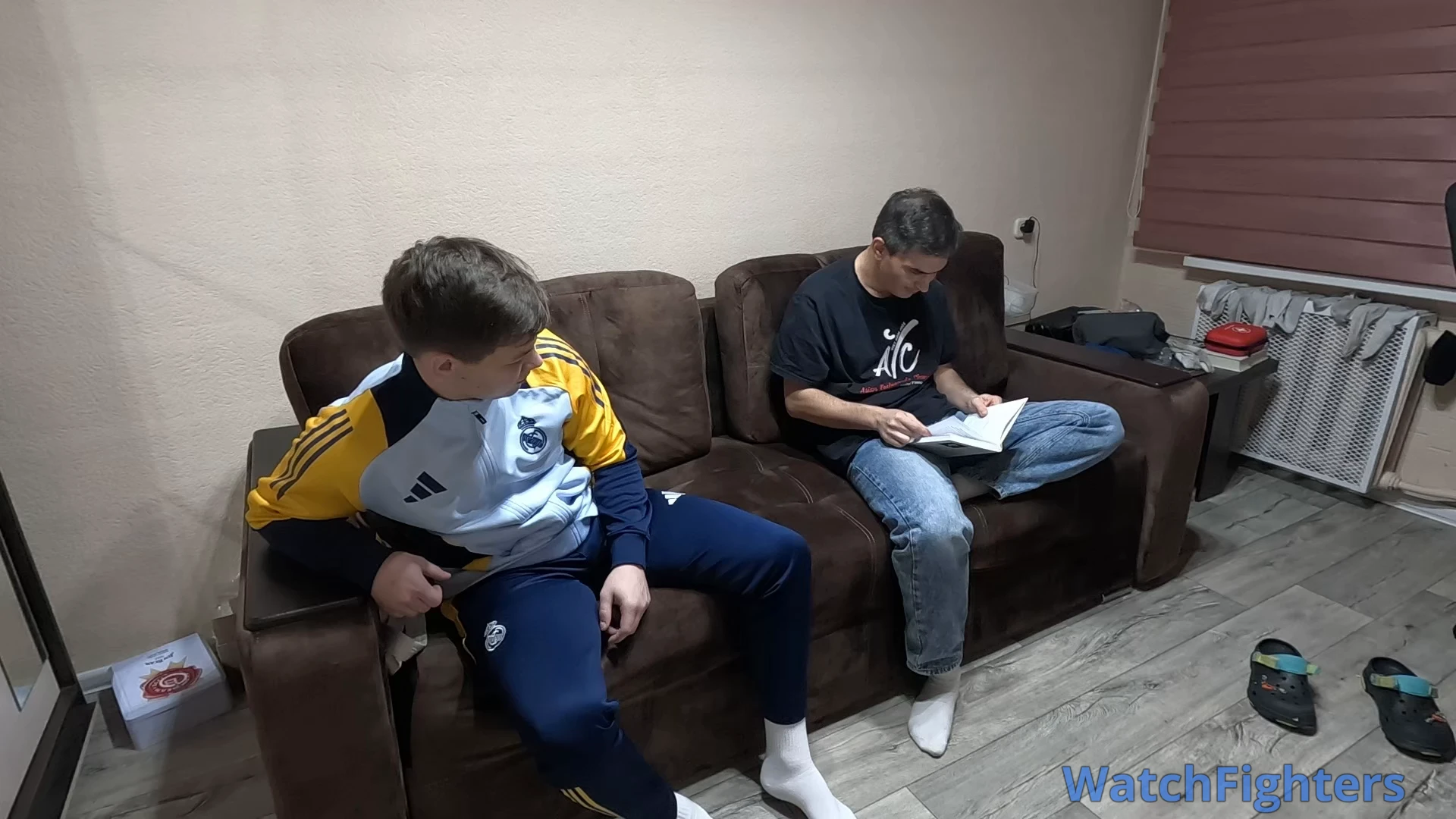 The younger brother came home from football practice and saw his older brother reading. He decided to show him that strength and agility are better than reading books.